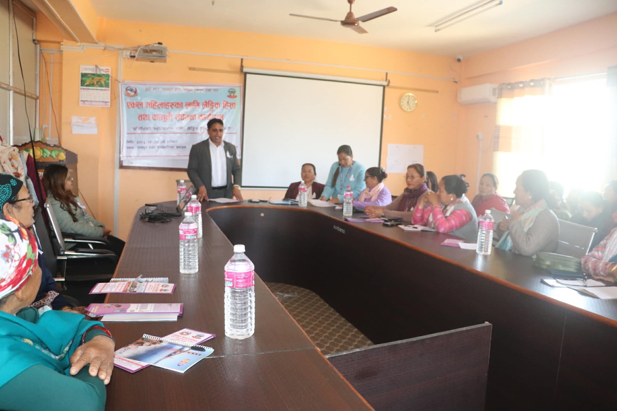 पाल्पा,२० मंसिर । एकल महालहरुका लागि लैङ्गिक हिंसा तथा कानूनी सचेतना कार्यक्रम शनिबार रामपुर नगरपालिकामा सम्पन्न भएको छ । महिला हिंसा विरुद्धको १६ दिने अभियान अन्तर्गत नगरपालिका भित्रका एकल महिलाहरुका लागि लैंगिक हिंसा र कानुनी व्यवस्था सम्बन्धी सचेतना प्रदान गरिएको हो ।कार्यक्रममा समाजमा हुने हिंसा, यसको अवस्था, निम्त्याउन सक्ने दुर्घटना, यसको न्यूनीकरण , कानुनी उपचार लगाएतका विषयमा सहजिकरण गरिएको थियो । सचेतना कार्यक्रममा बोल्दै रामपुर नगरपालिकाका नगर प्रमुख रमण बहादुर थापाले एकल महिलाहरुलाई सामाजिक रुपबाटै हुने विभिन्न किसिमका हिंसाहरु चुनौतीको रुपमा रहेको उल्लेख गर्नुभयो । यसका लागि हिंसाको कानुनी उपचार खोज्न आवश्यक रहेको बताउनुभयो । उहाँले आफु एकल भए पनि विभिन्न सिप र उद्यमको माध्यमबाट आत्मनिर्भर बन्न आग्रह समेत गर्नुभयो ।यसका लागि रामपुर नगरपालिका संधै साथमा रहेको बताउनुभयो ।