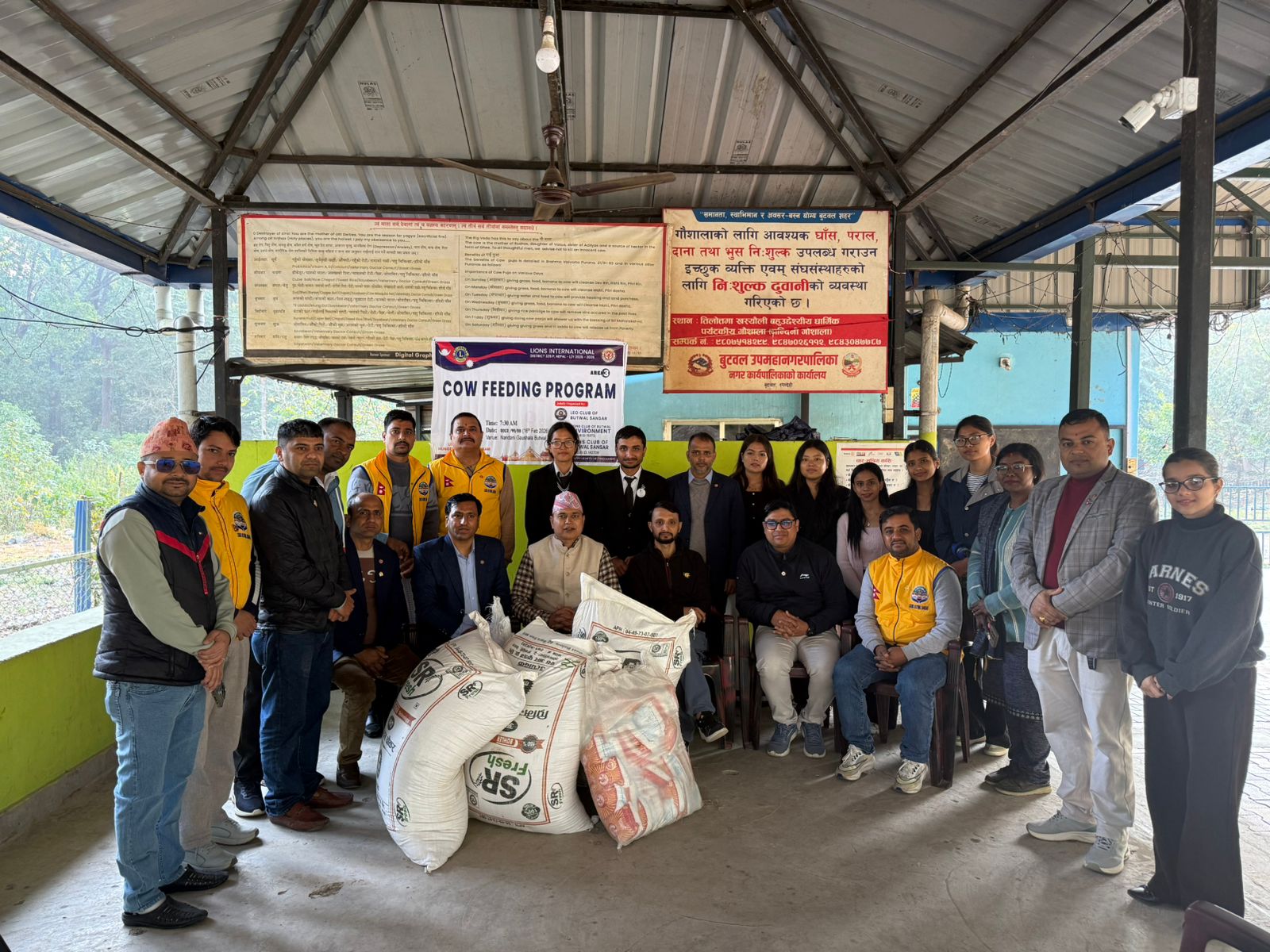 गाइ हरुलाइ चाहिने नुन, चापट, चोकर, पराल, लगायत का सामाग्रि हस्तान्तरण गरिएको हो ।लायन्स क्लब अफ बुट्वल सन्सार का प्रथम उपाध्यक्ष ला राजेश खत्रि ज्यु को अध्यक्षता , ला क्लब अफ बुटवल इन्भारमेन्ट, लियो क्लब अफ बुटवल सन्सार का अध्यक्ष ज्यु हरुको सह अध्यक्षता , लायन्स इन्टरनेसनल ३२५ पि नेपाल का गभर्नर पि एम जे एफ ला बाराराम भटराइ ज्यु को प्रमुख आथित्यता, बुटवल न पा ७ का जनप्रतिनिधि, ला क्लब अफ बुटवल सन्सार का सस्थापक अध्यक्ष प्रकास भटराइ ज्यु, एरिया चिफ ज्यु, ला सन्सार का पुर्ब अध्यक्ष ला महेश न्यौपाने ज्यु, लगायत को आथित्यतामा तिन वटै क्लब का करिब ५० जना ब्याक्तित्व हरुको सहभागिता मा कार्यक्र्म सम्पन्न भएको हो।