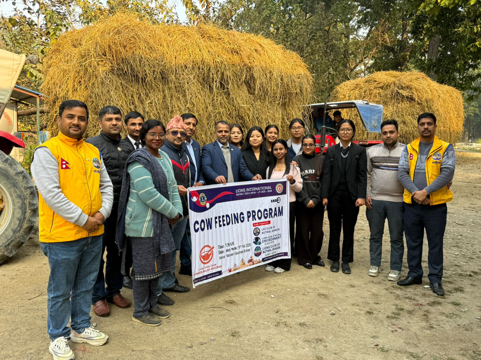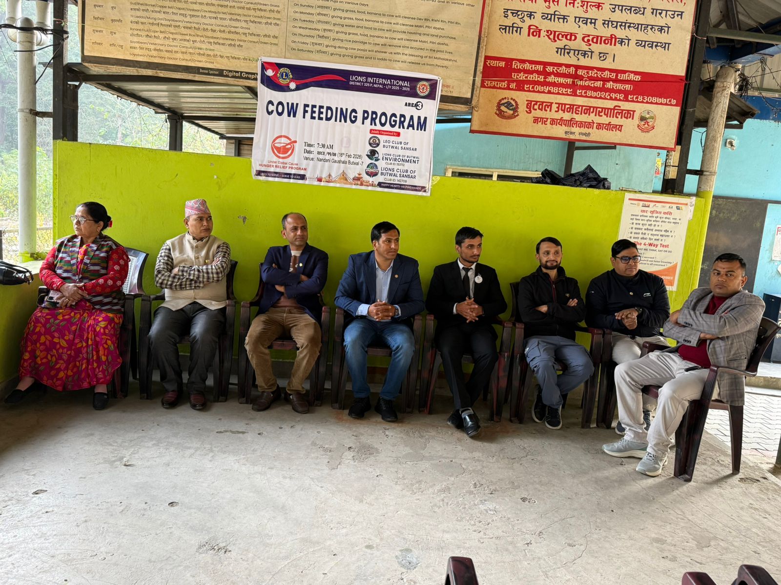गाइ हरुलाइ चाहिने नुन, चापट, चोकर, पराल, लगायत का सामाग्रि हस्तान्तरण गरिएको हो ।लायन्स क्लब अफ बुट्वल सन्सार का प्रथम उपाध्यक्ष ला राजेश खत्रि ज्यु को अध्यक्षता , ला क्लब अफ बुटवल इन्भारमेन्ट, लियो क्लब अफ बुटवल सन्सार का अध्यक्ष ज्यु हरुको सह अध्यक्षता , लायन्स इन्टरनेसनल ३२५ पि नेपाल का गभर्नर पि एम जे एफ ला बाराराम भटराइ ज्यु को प्रमुख आथित्यता, बुटवल न पा ७ का जनप्रतिनिधि, ला क्लब अफ बुटवल सन्सार का सस्थापक अध्यक्ष प्रकास भटराइ ज्यु, एरिया चिफ ज्यु, ला सन्सार का पुर्ब अध्यक्ष ला महेश न्यौपाने ज्यु, लगायत को आथित्यतामा तिन वटै क्लब का करिब ५० जना ब्याक्तित्व हरुको सहभागिता मा कार्यक्र्म सम्पन्न भएको हो।
