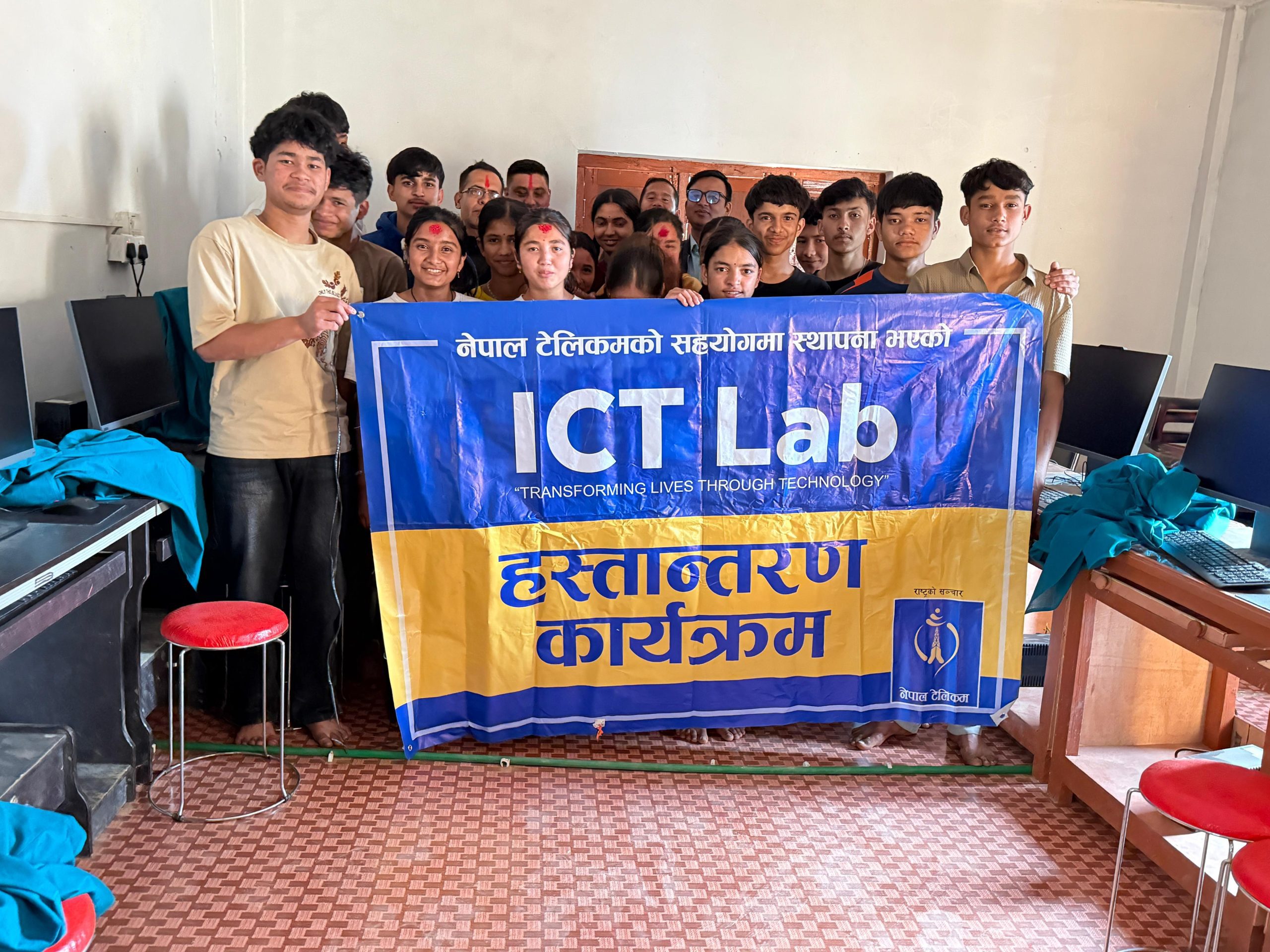 बिहीबार आयोजित एक कार्यक्रममा नेपाल टेलिकम प्रादेशिक निर्देशनालय भैरहवाका प्रशासनिक अधिकृत निराजन पण्डित तथा बरिष्ठ सहायक राम बन्जाडेले संयुक्त रूपमा कम्प्युटर हस्तान्तरण गर्नुभएको हो।