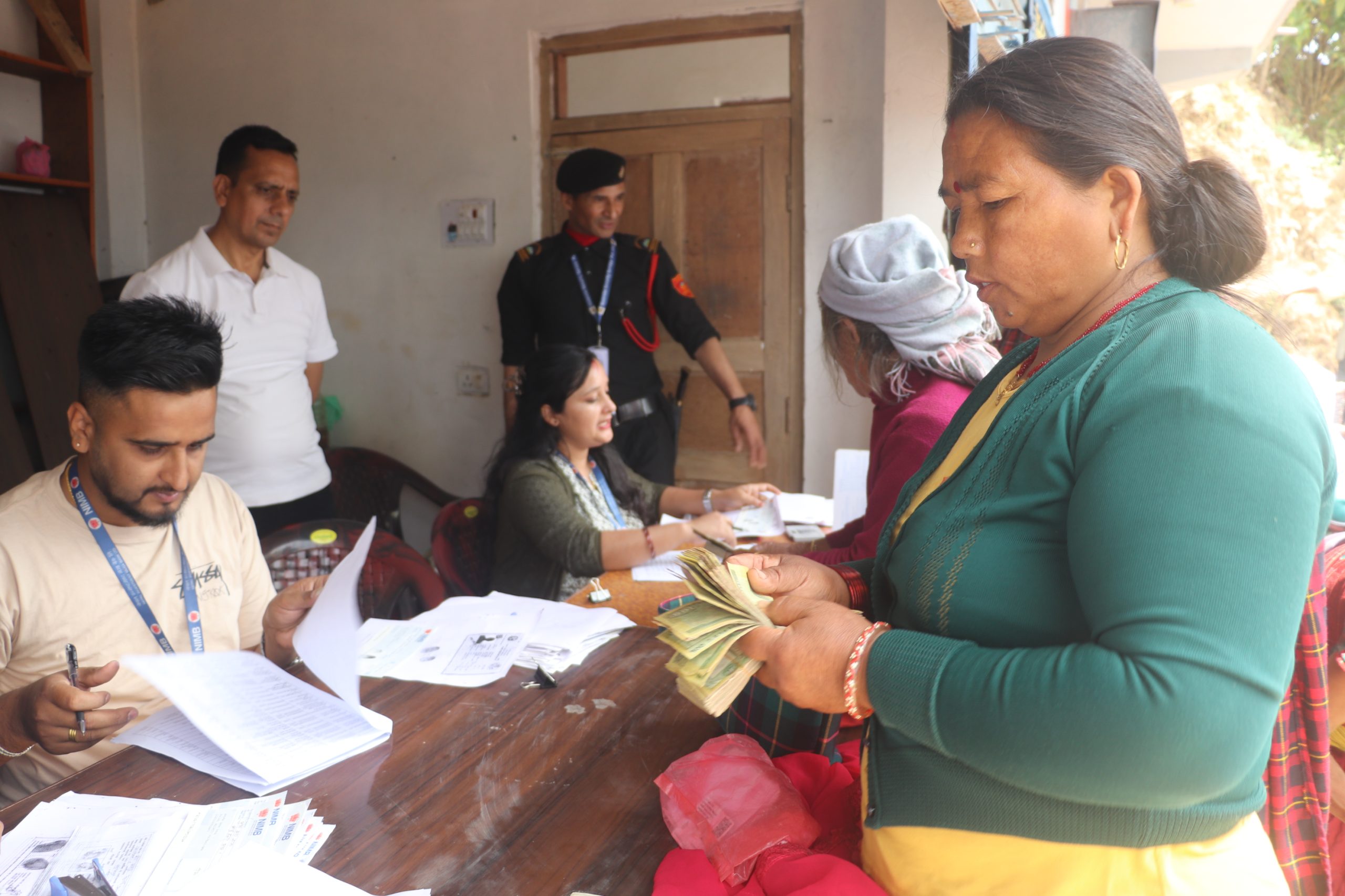 रामपुर नगरपालिका वडा नं.९ ले नेपाल इनभेष्टमेन्ट मेगा बैंक लिमिटेड रामपुर शाखाको सहकार्यमा सामाजिक सुरक्षा वितरण गरेको हो । वडा नं.९ को वडा कार्यालयमा १ सय ८२ जना लाभग्राहीलाई सामाजिक सुरक्षा भत्ता वितरण गरेको छ । बैंकले १९ लाख ५० हजार रुपैयाँ वितरण गरेको नेपाल इन्भेष्टमेन्ट बैंक रामपुर शाखाका प्रमुख बाबुराम कंडेलले जानकारी दिनुभयो । रामपुर नगरपालिका संग समन्वय गरेर बैंकले सेवा प्रदान गर्दै आएको उहाँको भनाई छ । नगरपालिकाले वडाबाटै भत्ता वितरण र बायोमेट्रिक भेरिफिकेशन सेवा प्रदान गरेपछि लाभग्राहीहरु खुशी भएका छन् । आफ्नो सामाजिक सुरक्षा भत्ता लिनकै लागि सवारी साधन मार्फत रामपुरको बेझाँड बजार पुग्नु पर्ने र आउजाउ गर्दा विगतमा १ हजार रुपैयाँ भन्दा बढी खर्च भएको र अहिले त्यो बाध्यता हट्दा खुशी लागेको रामपुर ९ का थान बहादुर पाटा मगरले बताउनुभयो । गाडीमा लामो समय सम्म यात्रा गर्दा बृद्धबृद्धाले सास्ती खेप्नु परे पनि अहिले वडा कार्यालयबाटै भत्ता बुझ्न पाउँदा सजिलो भएको उहाँले बताउनुभयो । यस्तै रामपुर ९ कै भिमिसरा नेपाली अहिले एक पैसा पनि खर्च नगरी आफ्नो सामाजिक सुरक्षा भत्ता पाउँदा सुख शान्ती भएको बताउनुहुन्छ । अहिले घरकै खाना खाएर घर नजिकैबाट भत्ता बुझ्न पाउँदा गाडी भाडा र खाजा खर्च संगै समयको पनि बचत भएको उहाँले बताउनुभयो ।
