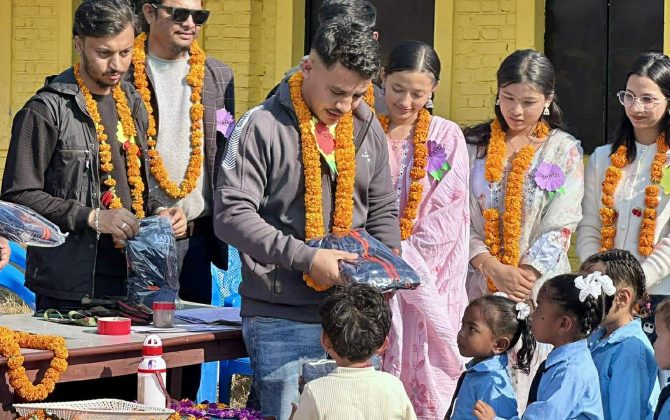 बुटवल,२७ मंसिर । तिहारमा देउसी–भैलो खेलेर संकलित रकमलाई समाजहितमा उपयोग गर्दै सामाजिक संस्था नमस्ते नेपालले सैनामैना–६ स्थित जनकल्याण माध्यमिक विद्यालयका नर्सरीदेखि कक्षा १ मा अध्ययनरत ५५ जना विद्यार्थीलाई जाडोका लागि ट्याकसुटको सेट वितरण गरेको...