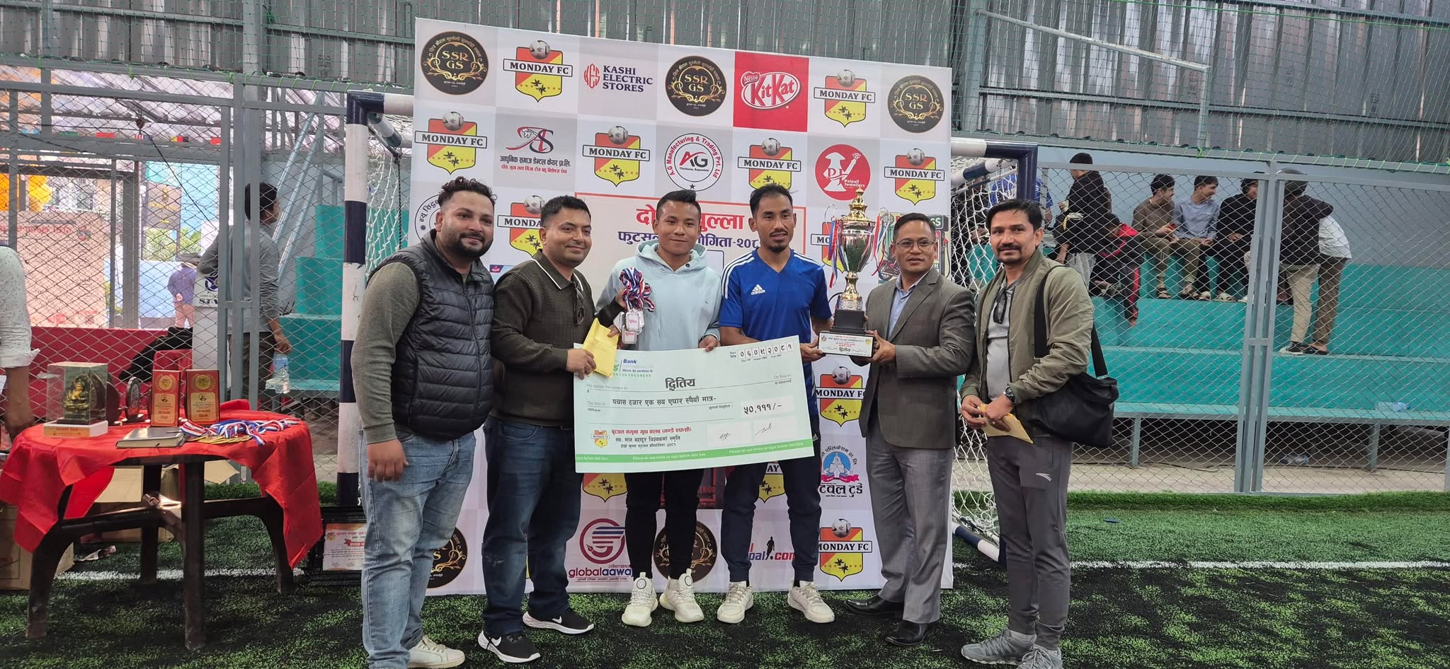 अभिषेक चर्ज ले नगद ५० हजार १ सय ११ रुपैया प्राप्त गरे । प्रतियोगीतामा बेस्ट पेलेयर अभिषेक चर्ज नवलपरासी सुभराज महत भए । उनले नगद ५ हजार पुरस्कार समेत पाए । यस्तै बेस्ट गोलकिपर हिमालयन एफ सि काठमाडौं दिपेस श्रेष्ठ ,उत्कृष्ट खेलाडी देबदह ब्याइज सुरज चौधरी भए । उनिहरुले ५÷५ हजार नगद सहित पुरस्कृत भएका हुन । प्रतियोगीतामा शशस्त्र प्रहरी वल नेपाल भैरहवा का प्रहरी उपरिक्षक आनन्द थापा, क्लवका कार्यवाहक अध्यक्ष रवि विश्वकर्मा, खेल संयोजक सुरज थापा लगायतले विजयी टिमलाई पुरस्कार प्रदान गरेका थिए ।