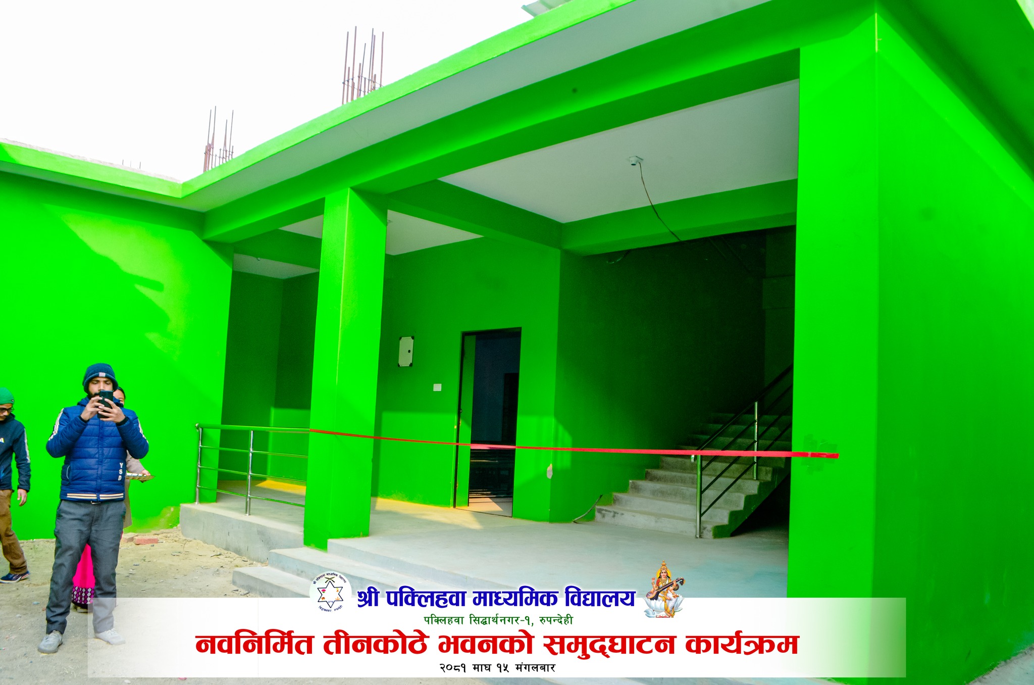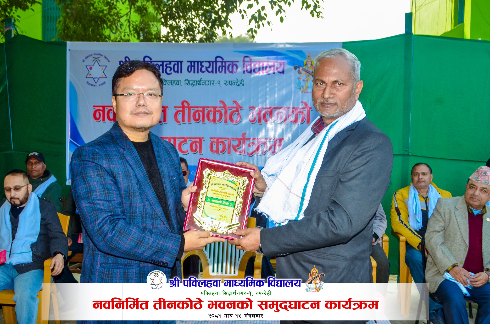 बुटवल ,१६ माघ । श्री पक्लिहवा माध्यमिक विद्यालय, सिद्धार्थनगर वडा नं १ पक्लिहवामा नवनिर्मित तीन कोठे भवनको बुधबार एक समारोह बिच समुद्घाटन भएको छ । पक्लिहवा मा.वि.व्यवस्थापन समितिका अध्यक्ष युवा समाजसेवी सुशील गुरुङ्गको सभापतित्व एवमं सिद्धार्थनगर नगरपालिकाका नगर प्रमुख इस्तियाक अहमद खानको प्रमुख आतिथ्यतामा भवन उद्घाटन भएको थियो । कार्यक्रममा उद्घाटन मन्तव्य दिदैं नगर प्रमुख खानले शिक्षाको विकाश विना कुनै पनि क्षेत्रको विकाश सम्भव नरहेकोले नगर पालिका शिक्षाको विकाशमा सदैव सकारात्मक रहेको र यस विद्यालयको शैक्षिक मात्र नभई पूर्वाधारको विकाशमा पनि आफ्नो सहयोग रहने बताए ।