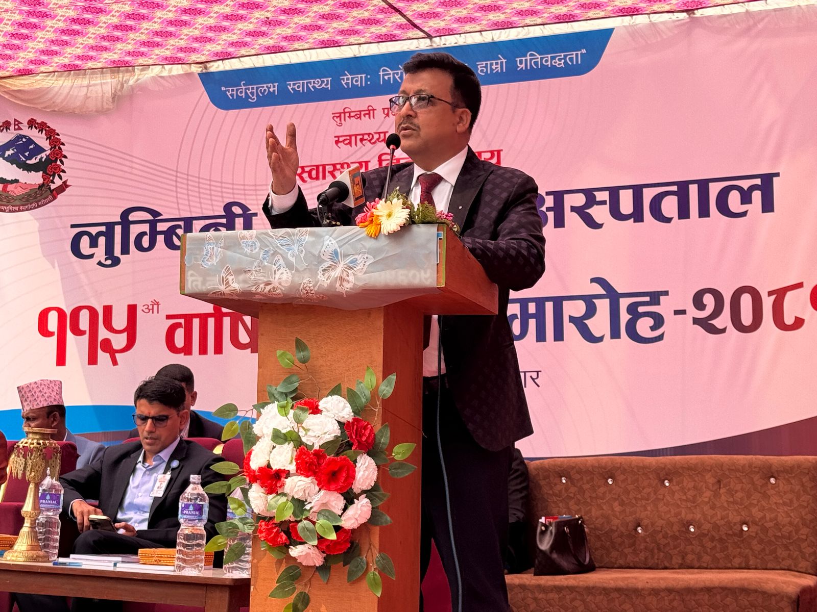 बुटवल । लुम्बिनी प्रदेशका स्वास्थ्यमन्त्री खेमबहादुर सारुले स्वास्थ्य सेवाको क्षेत्रमा भौतिक पूर्वाधारसँगै गुणस्तरीय जनशक्ति व्यवस्थापनमा सरकारले ध्यान केन्द्रित गरेको बताएका छन् । लुम्बिनी प्रादेशिक अस्पतालको ११५ औँ स्थापना दिवसका अवसरमा विहिबार आयोजित मूल समारोहलाई सम्बोधन गर्दै मन्त्री सारुले सरकारी अस्पतालहरुमा स्वास्थ्य सेवा सुधार तथा बिस्तारका लागि सरकार सहकार्य र सहयोगकामा सधै तयार रहेको बताए ।
