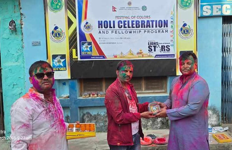 बुटवल १ चैत । लायन्स क्लब अफ बुटवल स्टार्सले होली मिलन समारोह गरेको छ । बुटवल सुन्दरनगर आफ्नो सचिवालयमा ‘वार्षिक कार्ययोजना अन्तर्गत होली मिलन कार्यक्रम आयोजना गरिएको हो । लायन्स क्लब अफ बुटवल स्टार्सले सामाजीक क्षेत्रमा बार्षिक ६० लाख बाराबरका सामाजिक योगदान गर्दै आएको अध्यक्ष भुपेन्द्र अर्यालले बताए । उनले क्लब प्रतिको माया, स्नेह र ममताका कारणले आज हामी यहाँ होली मिलन समारोहमा उपस्थित भएको बातए। क्लबलाई अझ अगाडि बढाउन एकजुट भएर अघि बढ्नुपर्नेमा जोड दिए ।