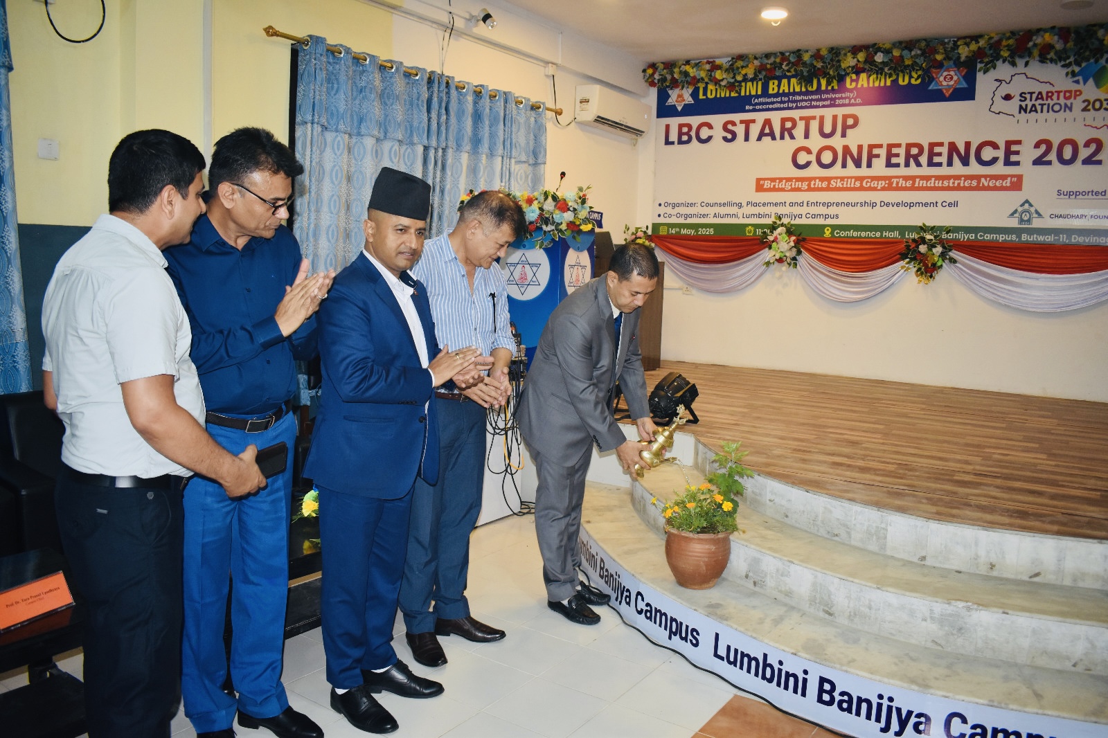 क्याम्पस सञ्चालक समितिका अध्यक्ष सुरेन्द्र प्रसाद श्रेष्ठको अध्यक्षता, रुपन्देही जिल्लाका प्रमुख जिल्ला अधिकारी वासुदेव घिमिरेको प्रमुख आतिथ्यता रहेको कन्फ्रेन्समा, कन्फ्रेन्स आयोजनाको उद्देश्यमाथि क्याम्पस प्रमुख प्रा।डा। तारा प्रसाद उपाध्यायले प्रकाश पार्नुभएको थियो साथै उहाँले नेपाल सरकारले स्टार्ट अप नेसन २०३० कार्यक्रम मार्फत उद्यमशीलता प्रवद्र्धन गर्न विभिन्न पहलहरू गरिरहेको सन्दर्भमा लुम्बिनी वाणिज्य क्याम्पसले पनि सहकार्य गर्र्दै यो कन्फ्रेन्स आयोजना गरेको बताउनुभयो । विद्यार्र्थीहरुलाई स्थानीय सिप तथा स्रोतसाधनको अधिकतम उपयोग गर्दै साना उद्यम सञ्चालनका लागि सहयोग पु¥याउने उद्देश्यका साथ उद्यमशीलता विकासका कार्यक्रमहरु सञ्चालन गर्नको लागी क्याम्पसले काउन्सिलीङ प्लेसमेन्ट तथा उद्यमशीलता विकास सेल र इन्कुवेसन सेन्टरको स्थापना गरेको समेत उहाँले जानकारी गराउनुभएको थियो ।
