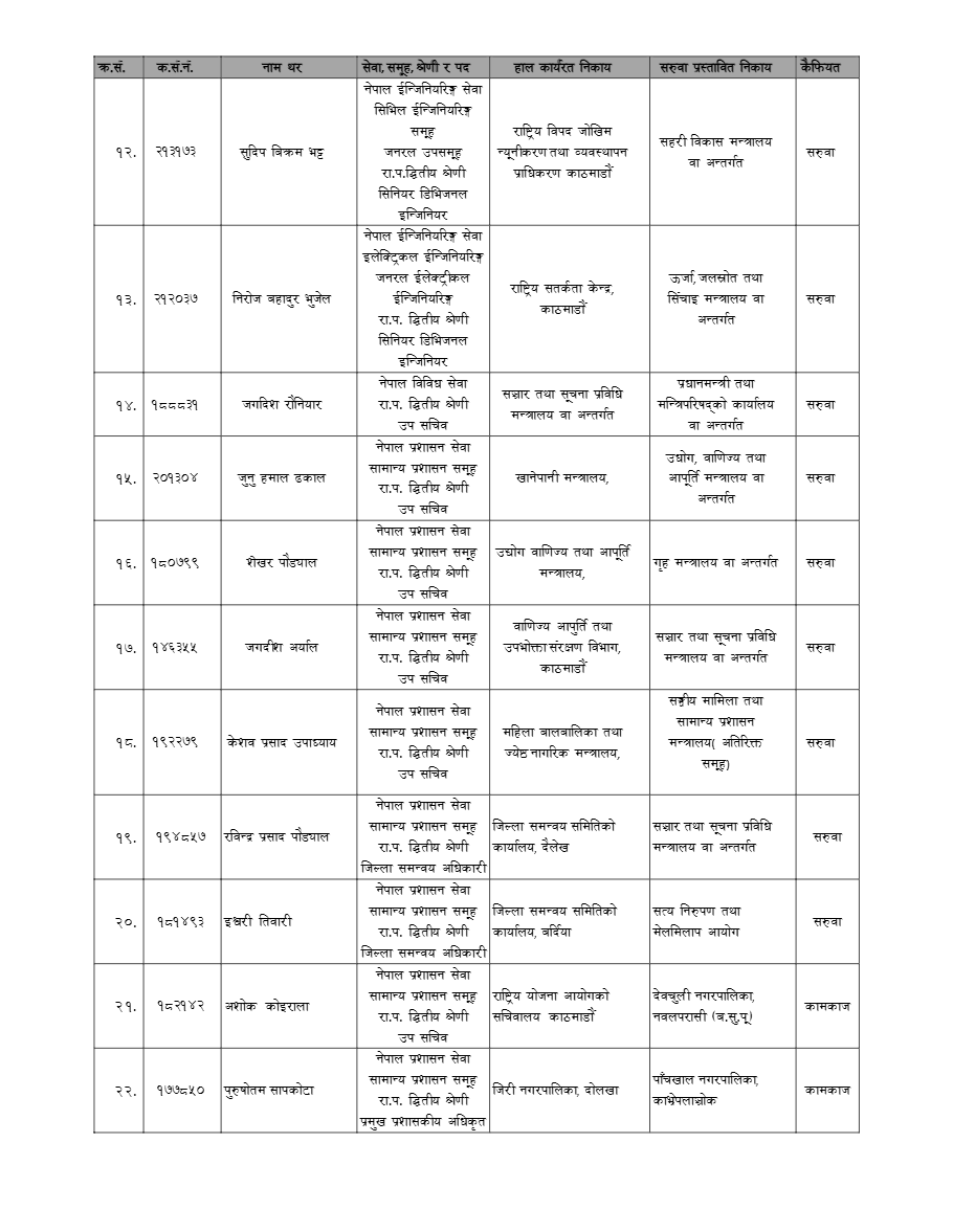 काठमाडौं,२ जेठ। सरकारले उपसचिव र शाखा अधिकृत गरि ९३ जना को सरुवा गरेको छ।