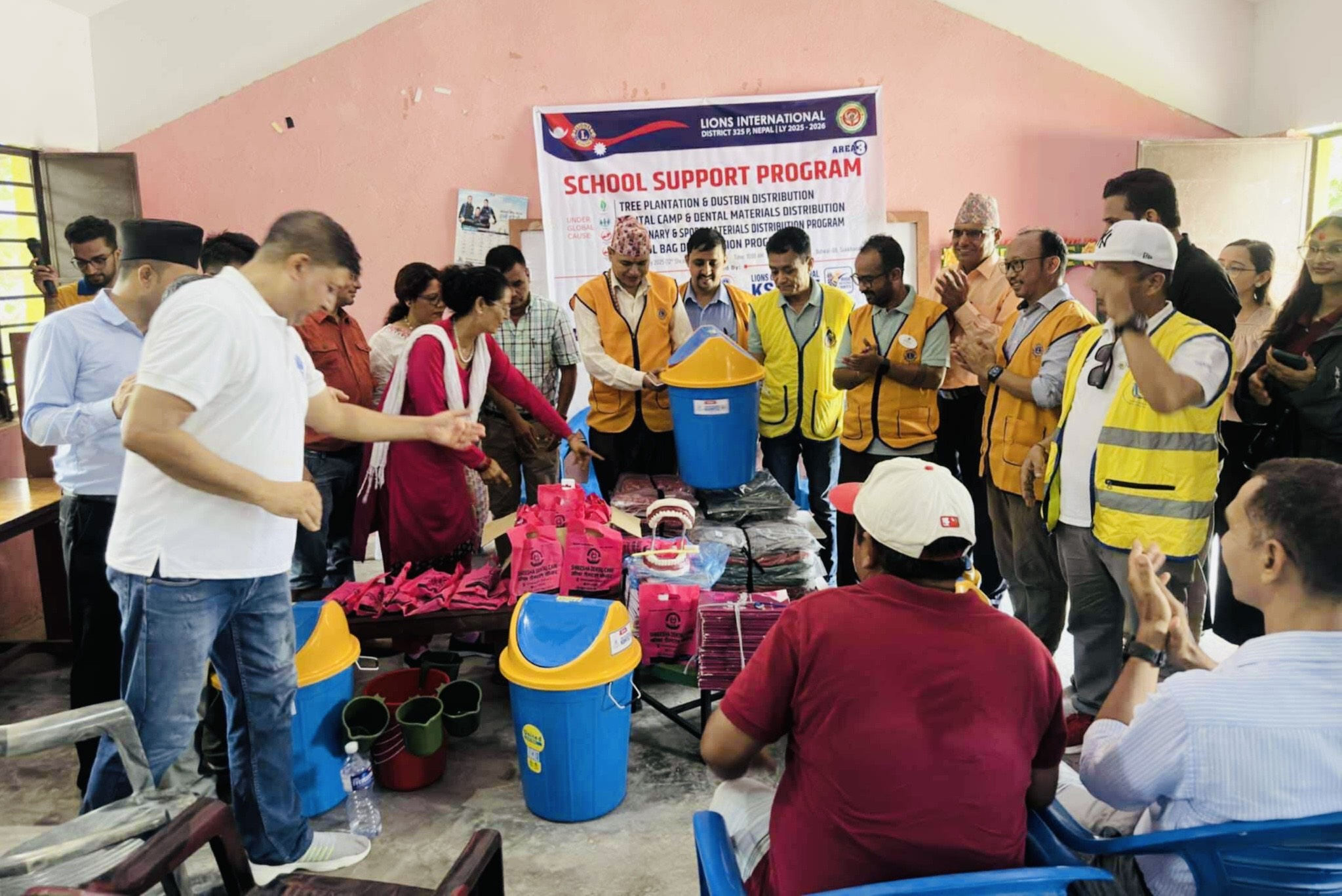 कार्यक्रमका प्रमुख आतिथ्य लायन्स डिस्ट्रिक्ट ३२५ पि’ का डिस्ट्रिक्ट गभर्नर पीएमजेएफ लायन बलराम भट्टराई रहनु भएको थियो भने विशिष्ट आतिथिका रूपमा निबर्तमान डिस्ट्रिक्ट गभर्नर एमजेफ लायन पुरुषोत्तम भक्त प्रधानाङ्ग सहभागी हुनु भएको थियो । कार्यक्रममा सामुहिक रुपमा विद्यालयमा वृक्षारोपण सम्पन्न गरी डस्टबिन वितरण, दन्त सफाइ सामग्री (ब्रस तथा अन्य ), शैक्षिक सामग्री तथा खेलकुद सामग्री (पिङ र चिप्लेटी ) साथै विद्यार्थीका लागि झोला कार्यक्रमका प्रमुख अतिथि, विशिष्ट आतिथि क्लब अध्यक्ष तथा पूर्व अध्यक्षहरूद्वारा संयुक्त रूपमा विद्यालयका प्रधानाध्यापक आशा बस्नेत, विद्यालय व्यवस्थापन समितिका अध्यक्ष झपटबहादुर गुरुङ तथा शिक्षक–अभिभावक समिति अध्यक्ष डोलराज पाण्डेलाई हस्तान्तरण गरिएको थियो।