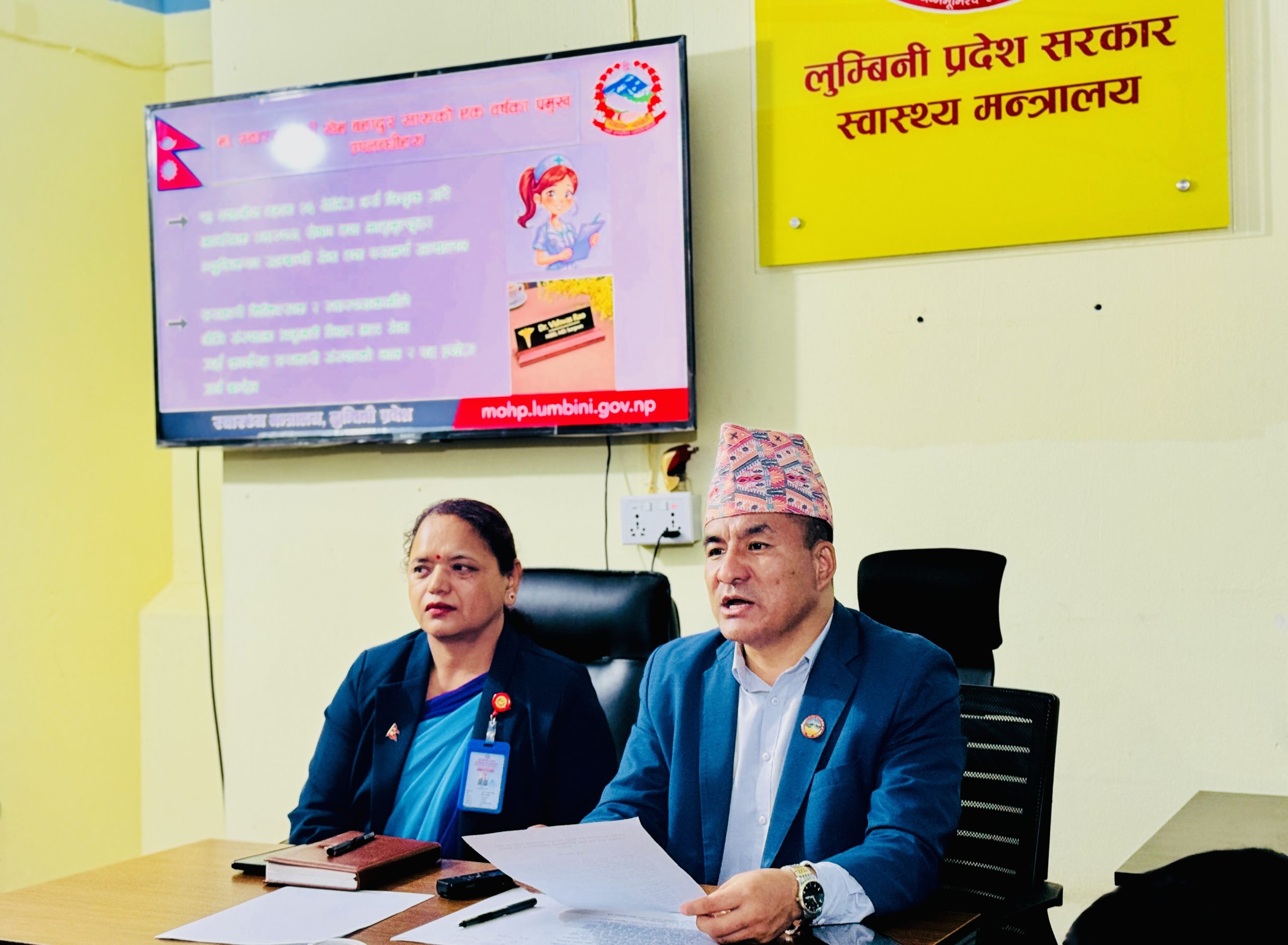 पाल्पा,१९ साउन । लुम्बिनी प्रदेशका स्वास्थ्य मन्त्री खेमबहादुर सारुले आफ्नो एक वर्षे कार्यकालका प्रमुख उपलब्धिहरू सार्वजनिक गर्नुभएको छ । देउखुरीस्थित राप्ती उपत्यकास्थित मन्त्रालयमा आयोजित पत्रकार सम्मेलनमार्फत मन्त्री सारुले सुशासन, पारदर्शिता, जवाफदेहिता र गुणस्तरीय सेवा प्रवाहलाई आधार मानेर तयार पारिएको २५ बुँदे उपलब्धि सार्वजनिक गर्नुभएको हो ।