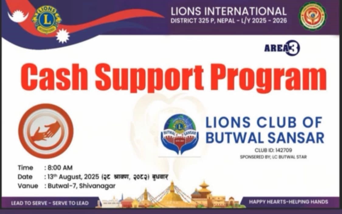 बुटवल, २८ साउन । लायन्स क्लव अफ बुटवल संसारको आयोजानमा बुटवलमा आर्थिक सहयोग गरिएको छ । गुल्मी घर भई हाल शिवनगरमा बुटवल –७ मा बसोबास गर्दै आएका विकास थापा मुटु सम्बन्धी गम्भिर रोग लागेर उपचारको क्रममा रहेका छन् । उपचार खर्च अत्यधिक महँगो भएका क्लवले सहयोग गरेको कार्यक्रम संयोजक उमेश श्रेष्ठले जानकारी दिए । थापालाई अध्यक्ष गोविन्द प्रसाद पाण्डेको अध्यक्षतामा भएको कार्यक्रममा लायन्स क्लब्स इन्टरनेशनल ३२५ पि का डिष्ट्रक गर्भनर पीएमजेएफ बलाराम भट्राराईको प्रमुख आतिथ्यता मा सहयोग प्रदान गरिएको हो । डिष्ट्रक गर्भनरबलाराम भट्राराईले नसर्ने रोगमध्येको सबैभन्दा धेरै समस्याका रुपमा मुटु रोग देखिएको छ । विश्वमा मृत्युको पहिलो कारणकै रुपमा यो समस्यालाई लिने गरिएको छ । नेपालमा पनि यो समस्या भयावह बन्दै गइरहेको छ । किशोर, बयस्क, अधबैंसेदेखि उमेर ढल्किइसकेका समेतका हरेक उमेर समूहका मानिसहरुलाई मुटु रोगको समस्या छ । पछिल्ला केही वर्षयता हृदयघातका कारण अकालमा ज्यान गुमाउनेमा किशोर र बयस्क उमेर समूहका धेरै रहेको बताए। कार्यक्रममा डिष्ट्रिक एड्भाईजर प्रकाश भट्रराई ,नि बर्तामान अध्यक्ष बम बहादुर थापा, सहसंयोजक उमेश श्रेष्ठ लगायतको आतिथ्यता रहेको थियो । क्लवका अध्यक्ष पाण्डेका अनुसार बुटवल ७ मा रहेका मुटु ग्रसित व्याक्तिलाई ३२ हजार ८ सय ४५ रुपैयाँ सहयोग गरिएको बताए ।