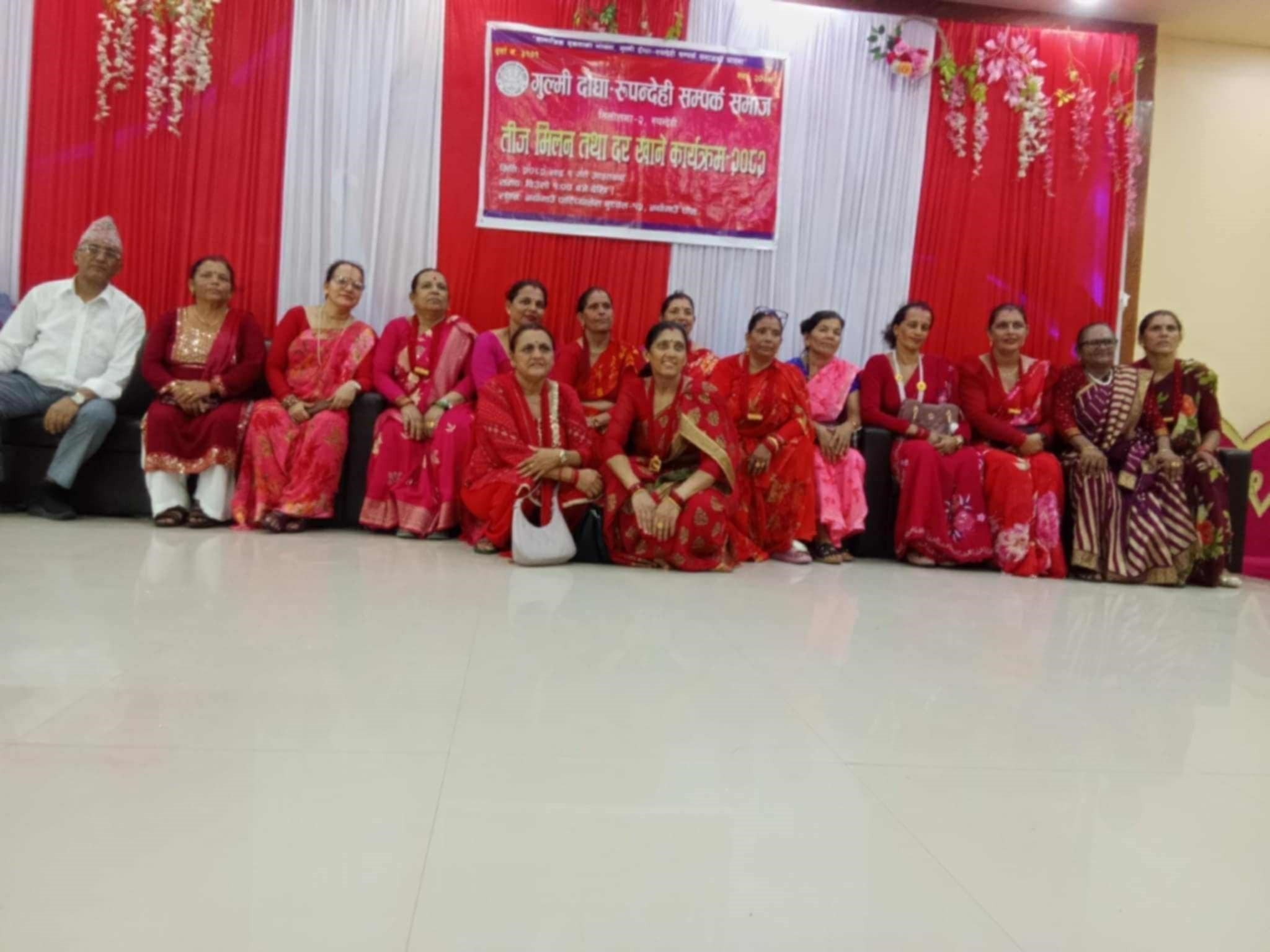 बुटवल,२ भदौ ।साविक दौघा गाविस हाल छ्त्रकोट गा पा. वाट बसाई साराइ गरि रुपन्देही आएका दिदी बैनि दाजु भाइहरु मिलेर बुटवल नयाँगाउ स्थित नयाँगाउँ पाटी प्यालेसमा गुल्मी दौघा रुपन्देही सम्पर्क समाजले तिज मिलन तथा दर खाने कार्यक्रम २०८२ भव्य सव्य अनि सफलतापुर्वक कार्यक्रम सम्पन्न भएको छ ।