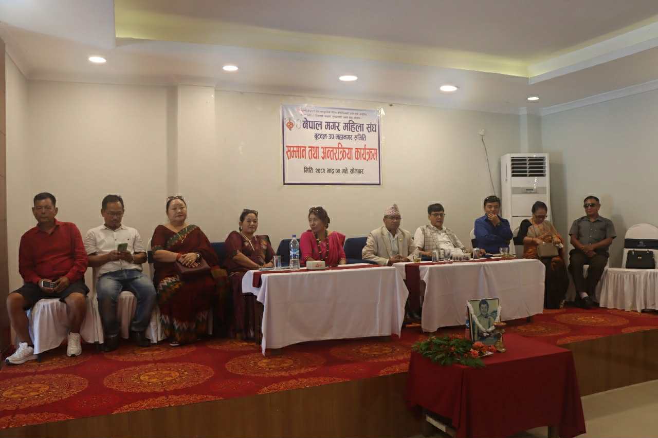 अन्तकृयामा मगर संघका केन्द्रीय सदस्य मधु राना,ज्ञान बहादुर सलामी, आदिवासी जनजाती महासंघ लुम्बिनीका सचीब मनोज कुमार राना,नेपाल मगर संघ लुम्बिनी का बरीष्ठ उपाध्यक्ष जनक थापा मगर, मगर महीला संघ रुपन्देहीका पुर्ब अध्यक्ष सकुन्तला पुन, मगर महीला संघ बुटवल उपमहानगरका निबर्तमान अध्यक्ष माया गलामी , लगायत मगर महीला संघका नेतृहरुको उपस्थीती रहेको थियो । कार्यक्रम लक्ष्मी थापाको संयोजन कुमारी थापाको स्वागत तथा तिर्थ कुमारी सोमरेको सञ्चालनमा सम्पन्न भएको हो ।