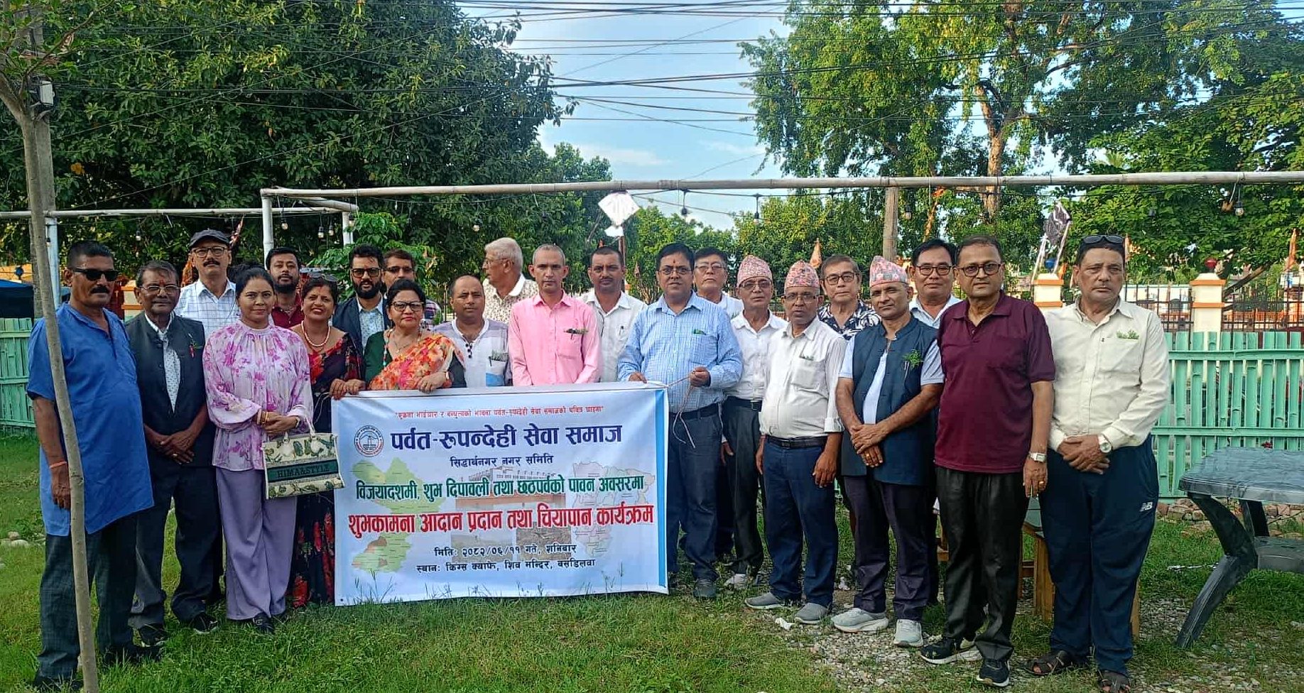 भैरहवा, ११असोज । पर्वत–रुपन्देही सेवा समाज सिद्धार्थनगर समितिद्वारा विजयादशमी, तिहार, छठलगायत चाडपर्वको अवसरमा भैरहवामा शुभकामना आदानप्रदान कार्यक्रम सम्पन्न भएको छ।