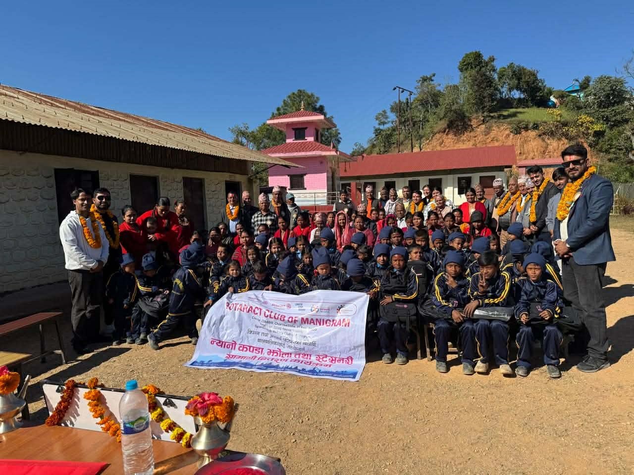 बुटवल,१३ मंसिर । रोट¥याक्ट क्लव अफ मणिग्रामको आयोजनामा छत्रदेव गाउँपालिका वडा नम्बर १ चिदिका आर्घाखाचीमा रहेको देविडाडा आधारभूत विद्यालयमा विद्यार्थीहरुको लागि सहयोग प्रदान गरेको छ । विपन्न तथा असमर्थ परीवारका विद्यार्थीका लागि सयोगार्थ स्वरूप न्यानो माया झोला तथा स्टेसनरी साम्रगी वितरण गरिएको क्लवका अध्यक्ष विनोद बस्यालले जानकारी दिए ।