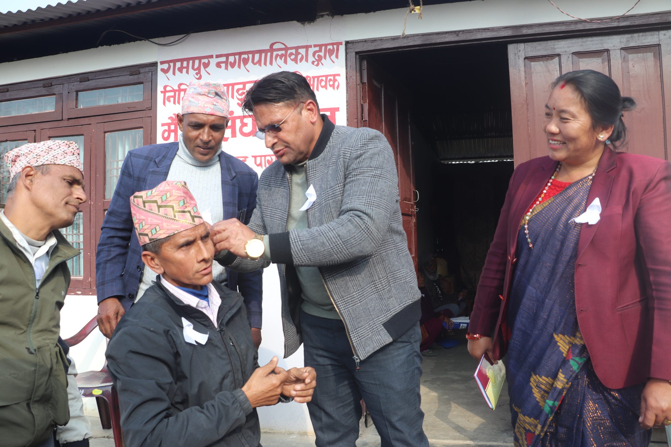 पाल्पा,१७ मंसिर । रामपुर नगरपालिकाले बुधबार ३४ औँ अन्तर्राष्ट्रिय अपाङ्गता दिवस मनाईएको छ । रामपुर नगरपालिकाले दिवसको अवसरमा अन्तरक्रिया सहित अपाङ्गता परिचयपत्र र सहायता सामग्री वितरण गरी दिवस मनाएको हो ।”अपाङ्गता समावेशी समाजको प्रबर्द्धन , सामाजिक उन्नतीको सम्बर्द्धन ” भन्ने राष्ट्रिय नाराका साथ दिवस मनाएको हो । दिवसको अवसरमा अपाङ्गता भएका ६ जनालाई परिचय पत्र प्रदान गरिएको छ भने १ जना श्रवण शक्ति कम भएका व्यक्तिलाई श्रवण सहायता सामग्री वितरण गरिएको छ । सामग्री वितरण गर्दै रामपुर नगरपालिकाका नगर प्रमुख रमण बहादुर थापाले अपाङ्गता भएका व्यक्तिहरुको सहजता र राहतका लागि कानुनी व्यवस्था भए पनि कार्यान्वयन पक्ष कमजोर हुँदा सास्ती संगै समस्या झेल्नु परेको बताउनुभयो ।अपाङ्गता भएका व्यक्तिहरुलाई सहायता पुग्ने कानुन निर्माण भए पनि कार्यान्वयन पक्ष फितलो हुँदा अधिकारको पूर्ण प्रत्याभुति हुन नसकेको उल्लेख गर्नुभयो । उहाँले फरक क्षमता भएका व्यक्तिहरुलाई समाज र राष्ट्र सबैले सम्मानजनक व्यवहार गर्न आवश्यक रहेको बताउनुभयो । नगर प्रमुख थापाले शारिरिक रुपले अशक्त भए पनि उच्च मनोबलका साथ काम गर्न आग्रह गर्दै सरल जीवनयापनका लागि नगरपालिकाले आर्थिक र भौतिक दुवै सहयोग गर्ने प्रतिबद्धता व्यक्त गर्नुभयो । उहाँले भन्नुभयो- “म अपाङ्ग छु भनेर आफुलाई कमजोर नसोच्नुस ,उच्च मनोबलका साथ अगाडी बढ्नुस नगरपालिका संधै तपाईहरुको साथामा छ र तपाईहरुलाई सहयोग गर्छौँ ।” उहाँले अपाङ्गता भएका व्यक्तिहरुका लागि नगरपालिकाले अपाङ्गमैत्री भवन निर्माण गरेको र उक्त भवनबाट फरक क्षमता भएका व्यक्तिहरुलाई रोजगारी संगै निशुल्क आवासको व्यवस्था गरेको बताउनुभयो । साथै नगर प्रमुख थापाले अपाङ्गता भएका व्यक्तिहरुले सञ्चालन गर्ने पेशा व्यवसायमा नगरपालिकाले कर छुट दिंदै आएको जानकारी दिनुभयो ।