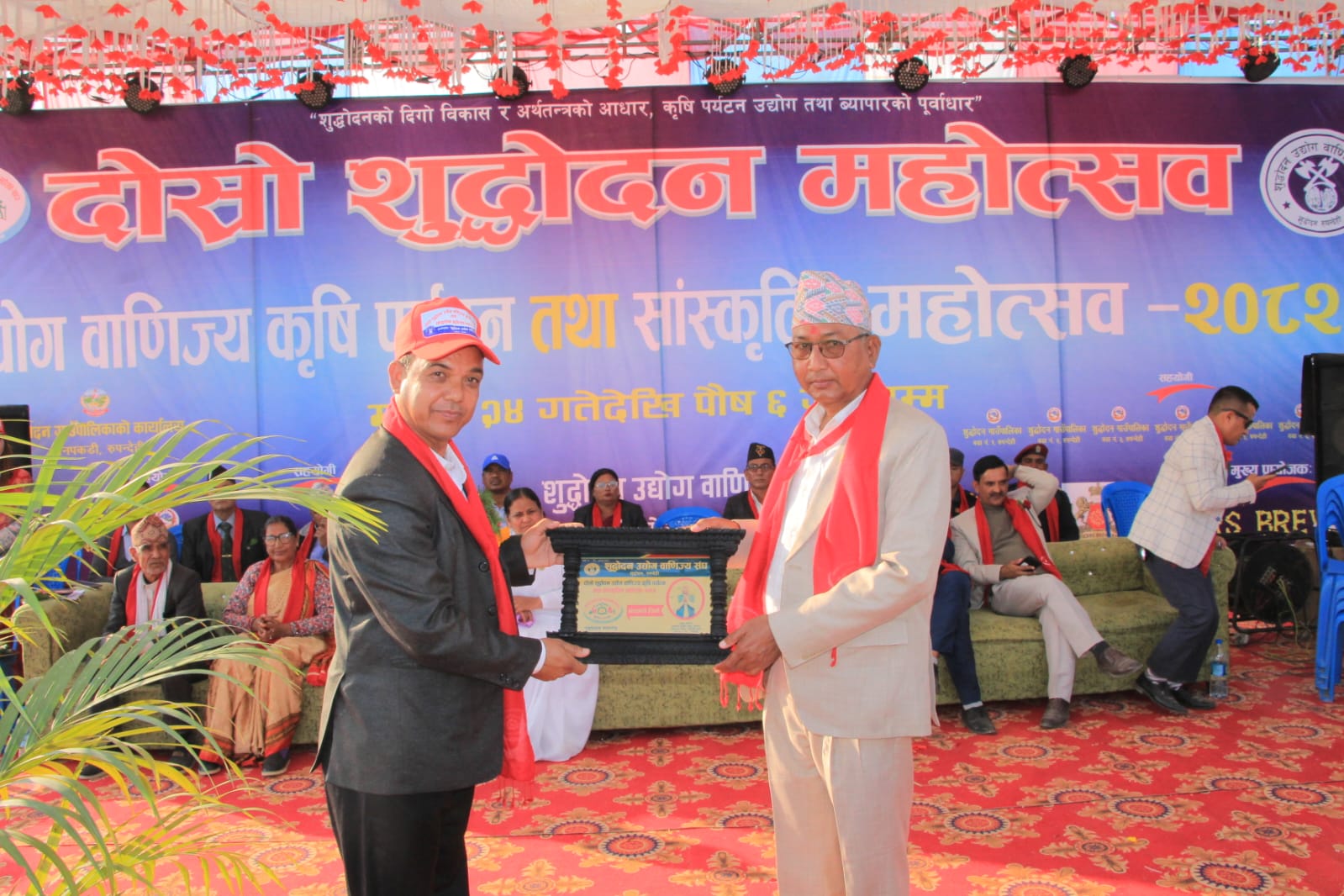 मानपकडी ,२४ मंसिर । रुपन्देहीको शुद्धोदन गाउँपालिकामा आयोजना गरिएको दोस्रो शुद्धोदन उद्योग वाणिज्य, कृषि, पर्यटन तथा सांस्कृतिक महोत्सव आजदेखि औपचारिक रुपमा सुरु भएको छ। शुद्धोदन उद्योग वाणिज्य संघका अध्यक्ष लालमणि श्रेष्ठको अध्यक्षतामा तथा लुम्बिनी प्रदेशका सांसद तुलसी प्रसाद चौधरीको प्रमुख आतिथ्यतामा उद्घाटन कार्यक्रम सम्पन्न भएको हो।उद्घाटन समारोहलाई सम्बोधन गर्दै सांसद तुलसी प्रसाद चौधरीले ग्रामीण क्षेत्रमा यस्ता भव्य मेला आयोजना गर्नु चुनौतीपूर्ण भए पनि स्थानीय बासिन्दाहरूको उत्साह साथ र सहयोगको कारण महोत्सव सफल हुने विश्वास व्यक्त गर्नुभयो। उहाँले कृषि, व्यापार, बजार विस्तार तथा पर्यटन प्रवर्द्धनमा यस्ता महोत्सवले महत्वपूर्ण भूमिका खेल्ने बताउनुभयो।