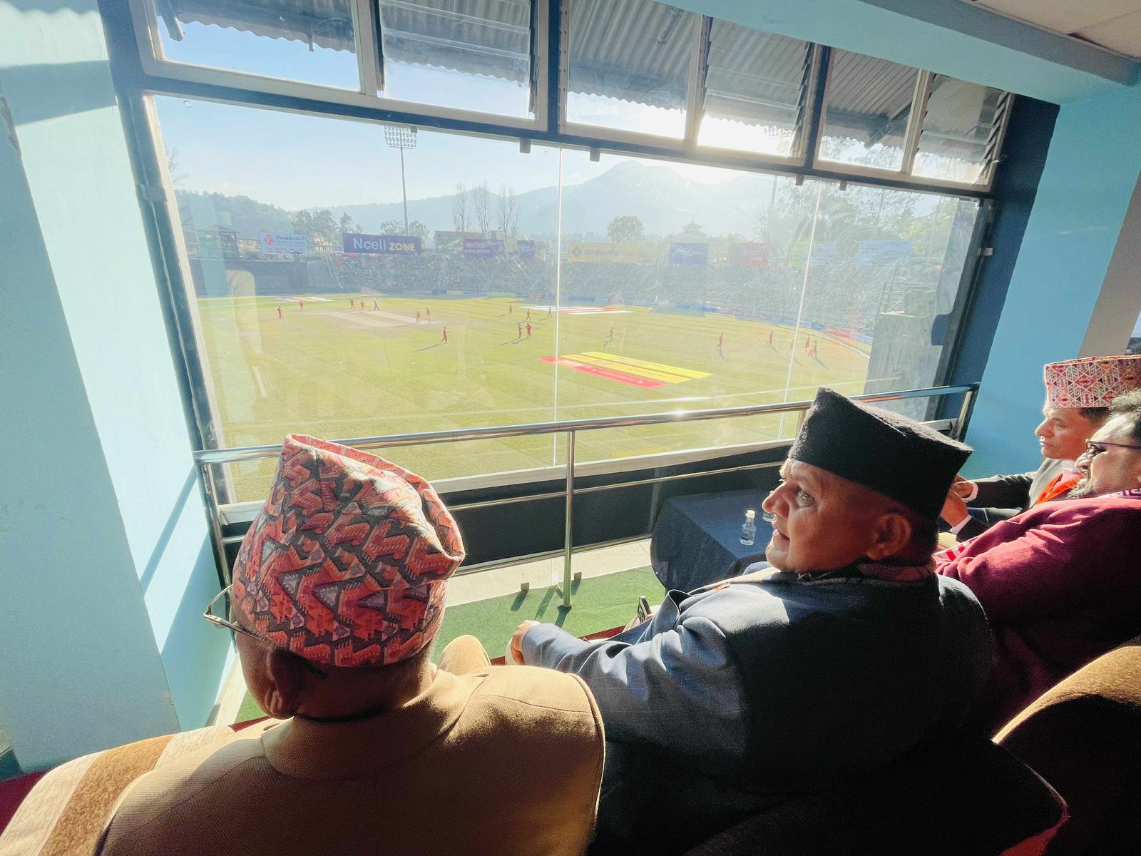 नेपाल क्रिकेट संघ क्यानका अध्यक्ष चतुरबहादुर चन्दले मुख्यमन्त्री आचार्य र मन्त्री ढकाललाई मैदानमा स्वागत गर्नुभयो ।