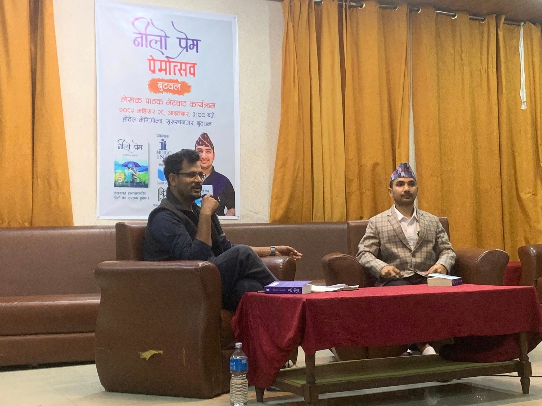 बुटवल,२८ मंसिर । ‘बेस्ट सेलर’ उपन्यास ‘नीलो प्रेम’ माथि बुटवलमा किताब संवाद तथा लेखक–पाठक भेटघाट कार्यक्रम भएको छ । प्रकाशनको ८ महिनामै ३० हजार बढी प्रति बिक्री भएको यस उपन्यासमाथि लेखक पुरुषोत्तम बजगाईँसँग पत्रकार सी.पी. खनालले संवाद गरेका हुन् ।