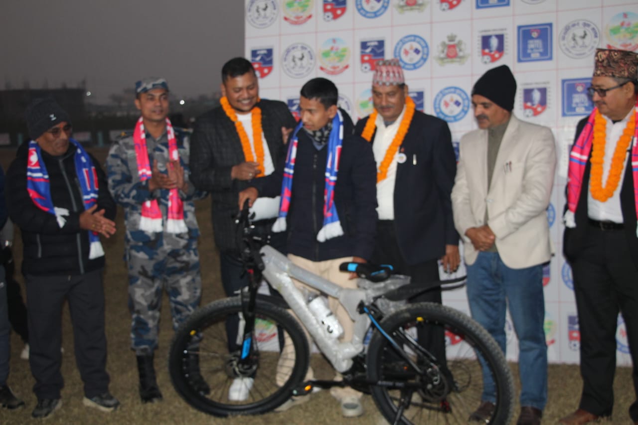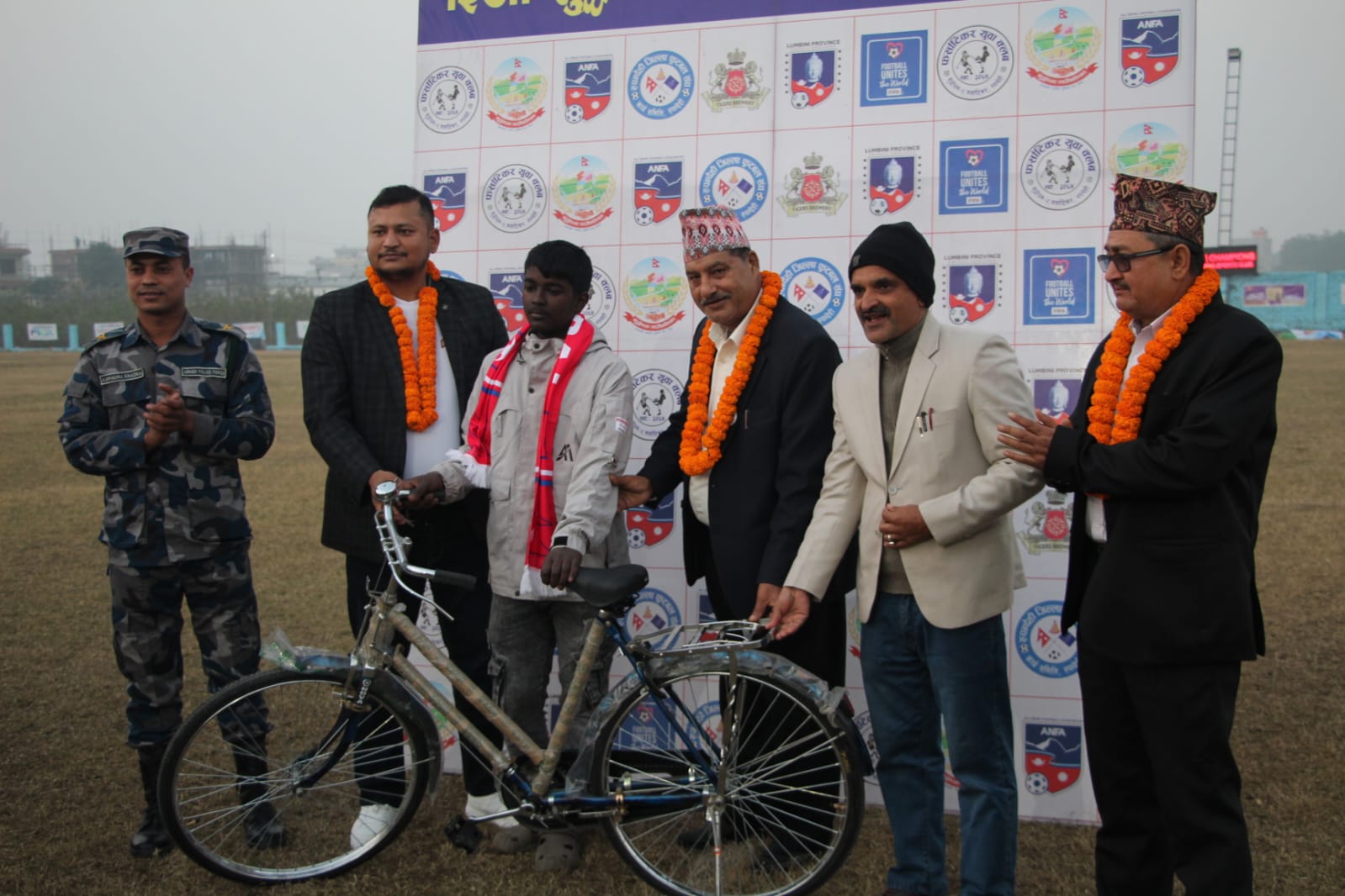 शनिबार सम्पन्न फाइनल प्रतियोगितामा झरना स्पोर्ट्स क्लब कुन्जलापुरले शुन्यका विरुद्ध २ गोलको अन्तरले कपिलवस्तु -११ कपिलवस्तुलाई पराजित गरि झरना स्पोर्ट्स क्लबले उपाधी पाउन सफल भएको हो ।कपको बिजेता झरना स्पोर्ट्स क्लबले ३ लाख ५५ हजार ५ सय ५५ रुपैया नगद सहित कप ,मेडल प्रमाणपत्र प्राप्त गरेको छ ।त्यसै गरि उपविजेता कपिलवस्तु -११ कपिलवस्तुले १ लाख ५५ हजार ५ सय ५५ रुपैया नगद सहित कप ,मेडल प्रमाणपत्र प्राप्त गर्न सफल भएको छ।शनिबार सम्पन्न फाइनल खेलमा म्यान अफ द म्याच झरना स्पोर्ट्स क्लबका संजय चौधरी घोषित भएका थिए। चौधरीले म्यान अफ द म्याच पुरस्कार नगद ३ हजार रुपैयाँ प्राप्त गरेका थिए ।