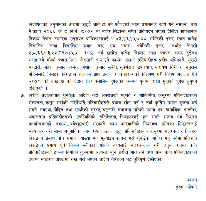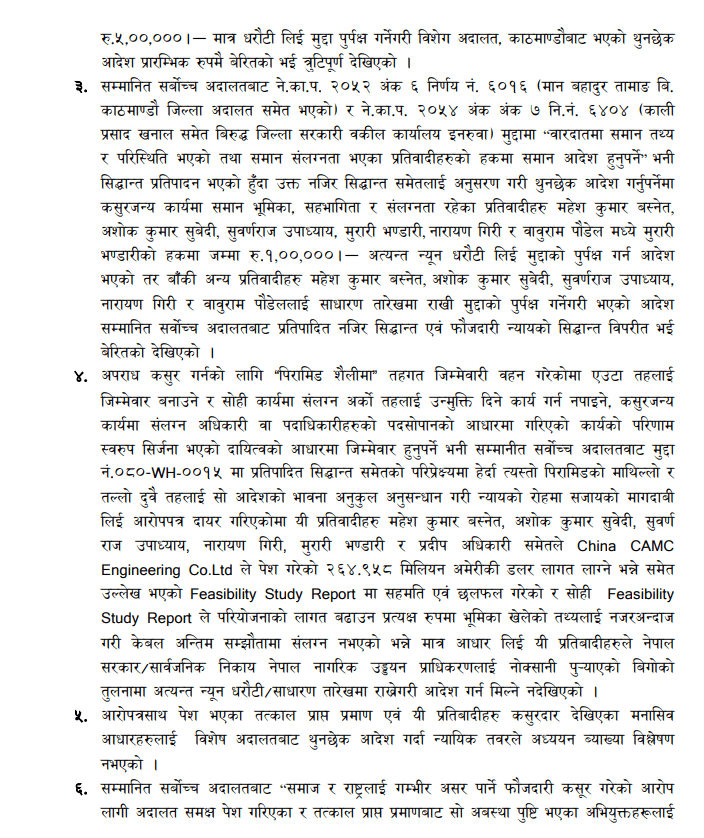 लागत इस्टिमेट अस्वभाविक रूपमा बढाई काम गराएको तथा अस्वाभाविक रूपमा बढी भुक्तानी भएकोमा उनीहरूलाई थुनामा राखी पुर्पक्ष गर्नुपर्ने माग दाबी लिई अख्तियार सर्वोच्च अदालत गएको हो ।