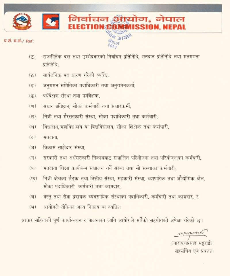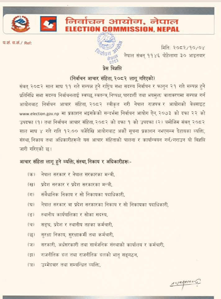 निर्वाचन आचार संहिता २०८२ लागू