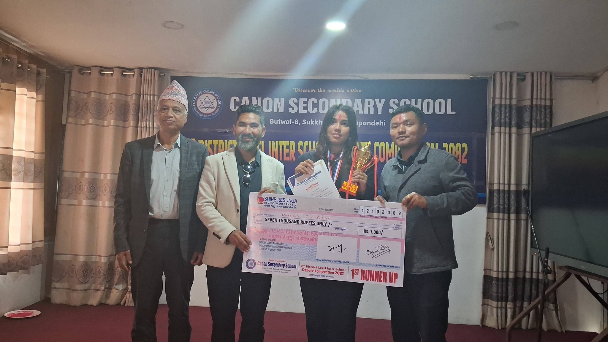 क्याननमा दोस्रो जिल्लास्तरीय बादविवाद प्रतियोगिता सम्पन्न, लुम्बिनी बोर्डिङकी असिरा बनिन च्याम्पियन