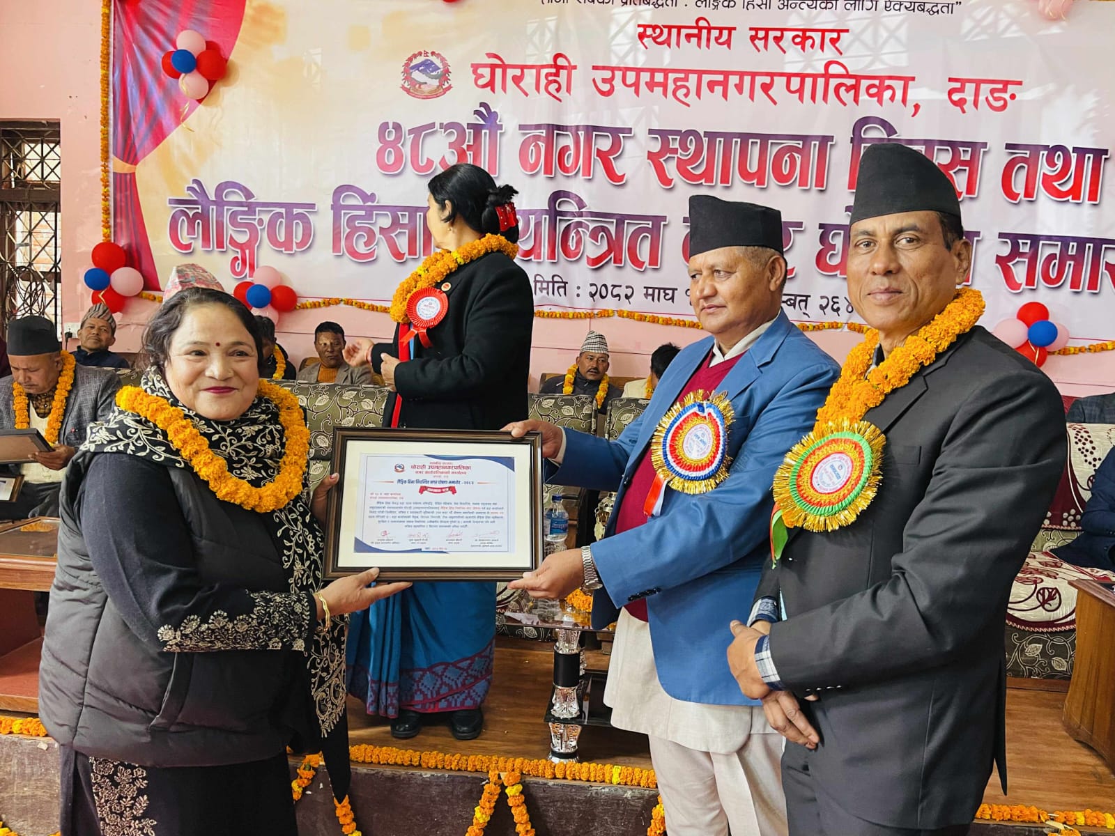 समारोहमा घोराही उपमहानगरपालिकाका प्रमुख नरुलाल चौधरीले लैङ्गिक हिंसा नियन्त्रित नगर घोषणा सम्बन्धी कार्यविधि २०८१ अनुसार ३२ वटा सूचक पूरा गरी घोषणा गरिएको जानकारी दिनुभयाे । पछिल्लो एक वर्षमा घोराहीमा जम्मा २२ वटा लैङ्गिक हिंसाका घटना दर्ता भएको र जनसंख्याको आधारमा यो संख्या ०.०१ प्रतिशत मात्र रहेको हाे ।