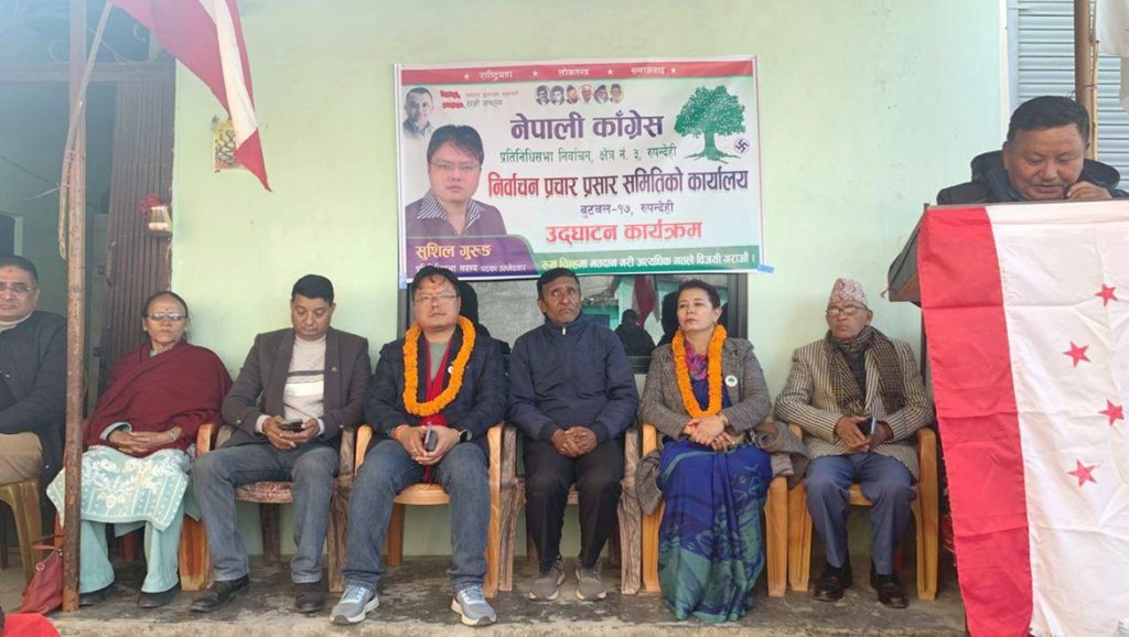 भैरहवा,२५ माघ । नेपाली काँग्रेस रुपन्देही क्षेत्र नम्बर ३ ले निर्वाचन प्रचारप्रसार कार्यालय खोल्ने र मतदाता भेटघाटलाई तिव्रता दिएको छ । २१ फागुनमा हुने प्रतिनिधि सभा सदस्य निर्वाचनको मिति नजिकिँदै जाँदा काँग्रेले रणनीतिक रुपमा प्रचारप्रसारलाई अगाडि बढाएको हो ।यो क्षेत्रबाट काँग्रेसले युवा नेता सुशील गुरुङलाई उम्मेदवार बनाएको छ । विद्यार्थी राजनीतिबाट खारिएका गुरुङको उम्मेदवारीले काँग्रेस क्षेत्रमा झन बलियो बनेको क्षेत्रीय सचिव लेखनाथ भट्टराईले बताए । उनका अनुसार क्षेत्रमा भिजेको, यही क्षेत्रका हरेक सामाजिक काममा सक्रिय र आमनागरिकको दुःखसुखमा सँगै हिंडेको उम्मेदवार भएकाले गुरुङप्रति आममतदाताको आशा–अपेक्षा बढी छ ।
