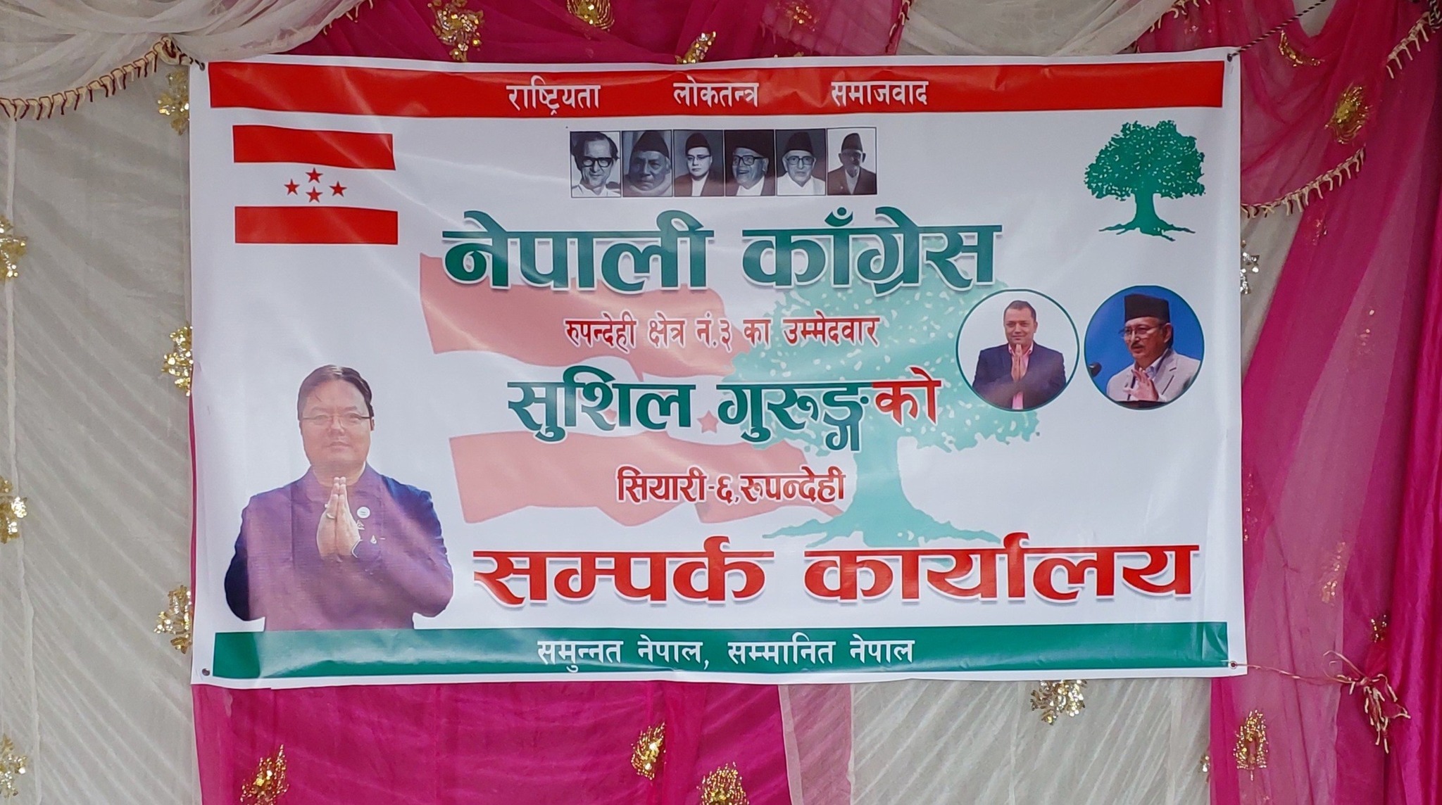 सियारी ,२६ माघ । रुपन्देही क्षेत्र नं. ३ को सियारी ६ मा निर्वाचन परिचालन तथा प्रचारप्रसार कार्यालय सञ्चालनमा ल्याएको छ ।फागुन २१ गते हुने निर्वाचन लाई सहयोग हुने गरी नेपाली कांग्रेस का उम्मेदवार सुशील गुरुङ को सियारी ६ मा हिजो प्रचार प्रसार सम्पर्क कार्यलय को स्थापना गरेको हो ।