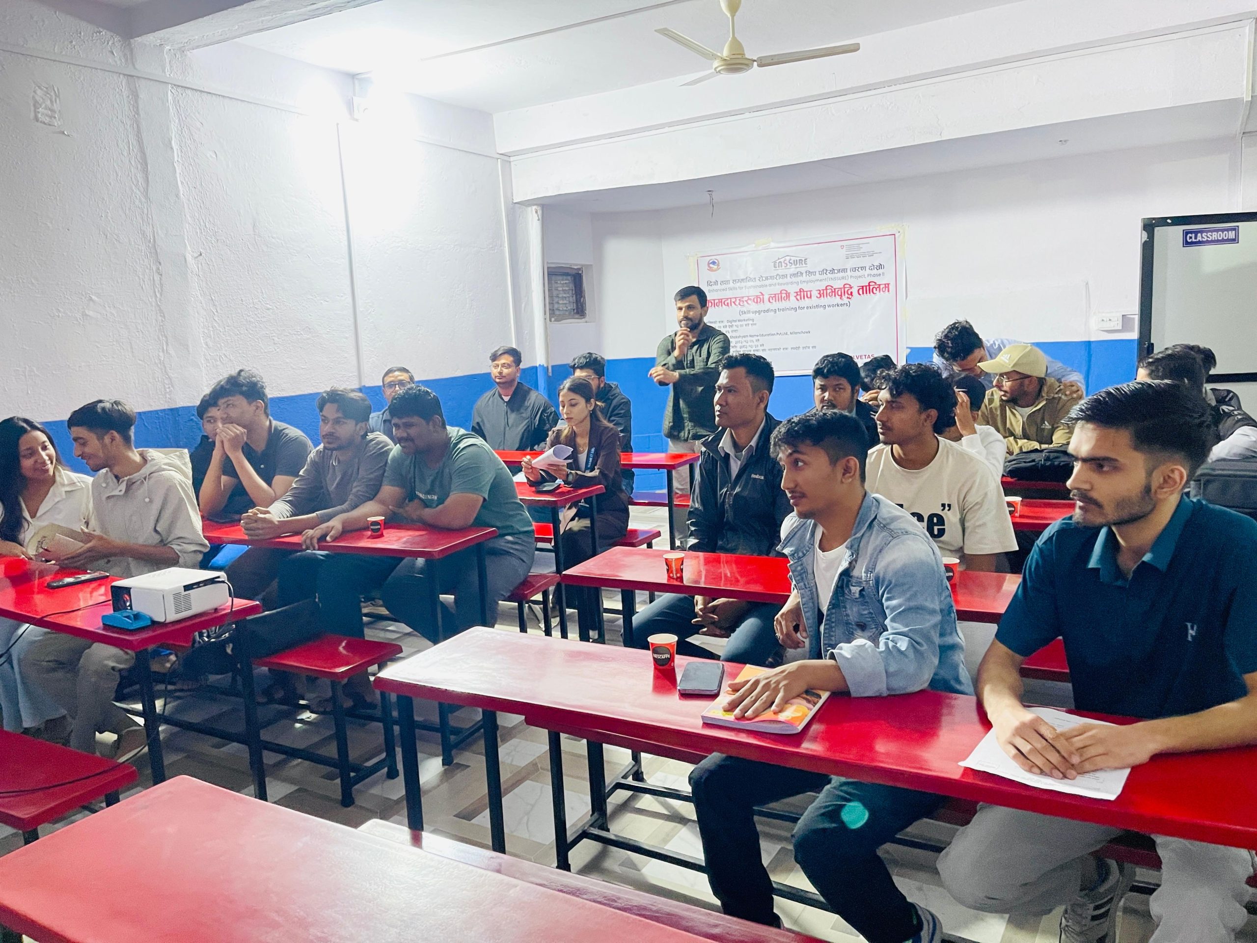 तालिमका प्रशिक्षक इन्जिनियर अमृत रानाभाटले तालिमको संरचना, उद्देश्य र सिकाइ विधिबारे जानकारी गराउँदै सामाजिक सञ्जाल मार्केटिङ, कन्टेन्ट निर्माण, डिजिटल विज्ञापन, ब्रान्डिङ, ग्राहक पहुँच विस्तार तथा अनलाइन व्यापार रणनीतिबारे सैद्धान्तिक र व्यावहारिक ज्ञान प्रदान गरिने जानकारी दिनुभयो ।