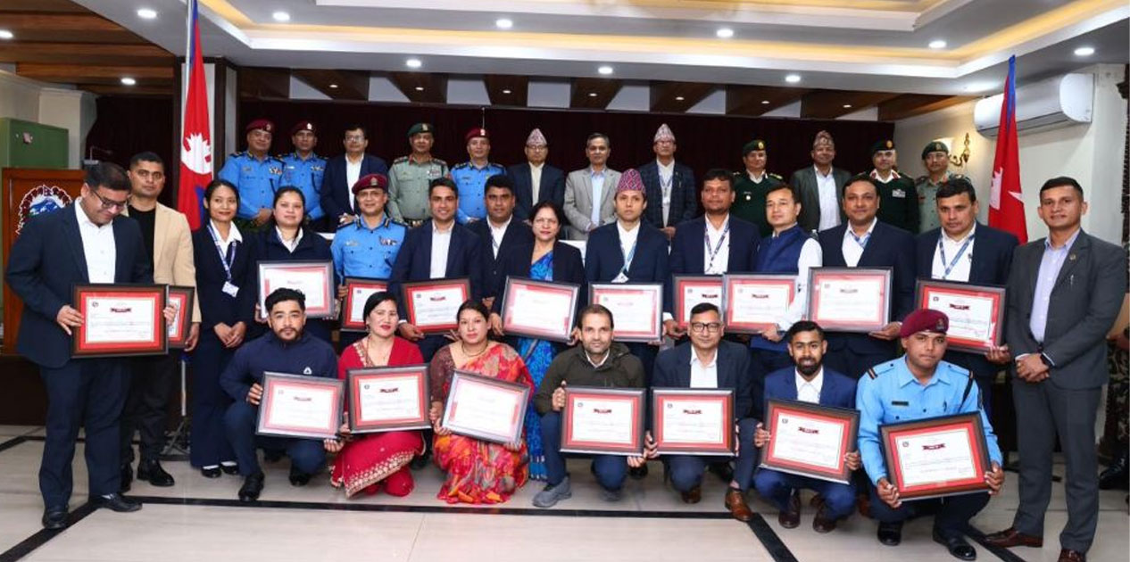 गृहमन्त्री ओमप्रकाश अर्यालद्वारा कर्मचारी तथा सुरक्षा निकायलाई सम्मानित