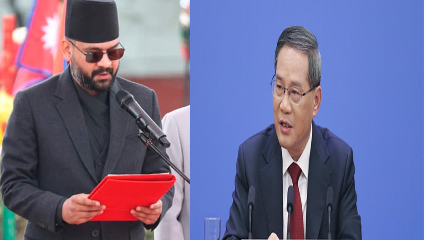 काठमाडौँ,१४ चैत । चिनियाँ प्रधानमन्त्री ली छियाङले नेपालका नवनियुक्त प्रधानमन्त्री बालेन्द्र ९बालेन० शाहलाई बधाई सन्देश पठाएका छन् । चिनियाँ प्रधानमन्त्री लीले शनिबार नवनियुक्त प्रधानमन्त्री शाहलाई बधाई सन्देश पठाएका हुन् । प्रधानमन्त्री शाहलाई आज एक बधाई सन्देश पठाउँदै चिनियाँ प्रधानमन्त्रीले यस्तो प्रतिबद्धता व्यक्त गरेका हुन् ।
