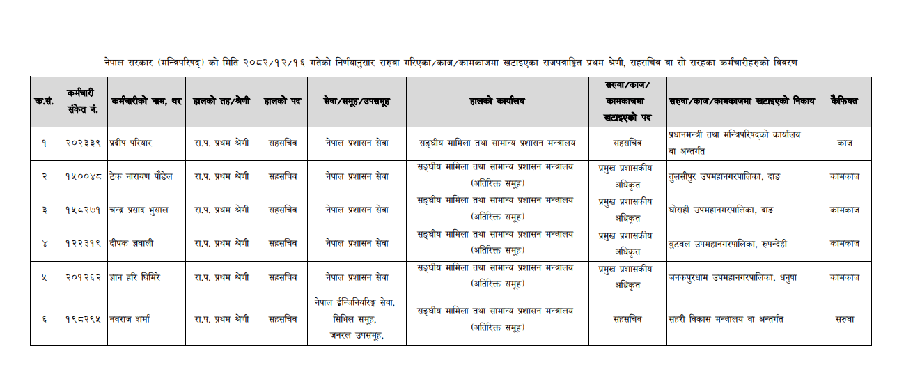 ६ जना सहसचिवको सरुवा