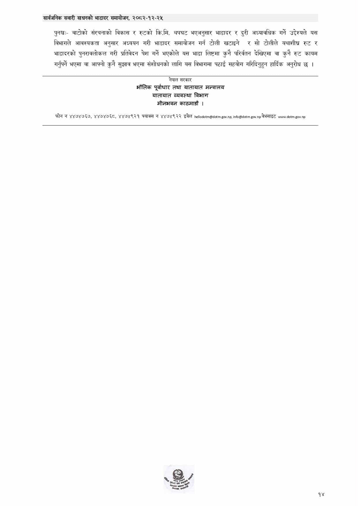 सार्वजनिक यातायात र मालवाहक भाडा आजैदेखि लागू हुने
