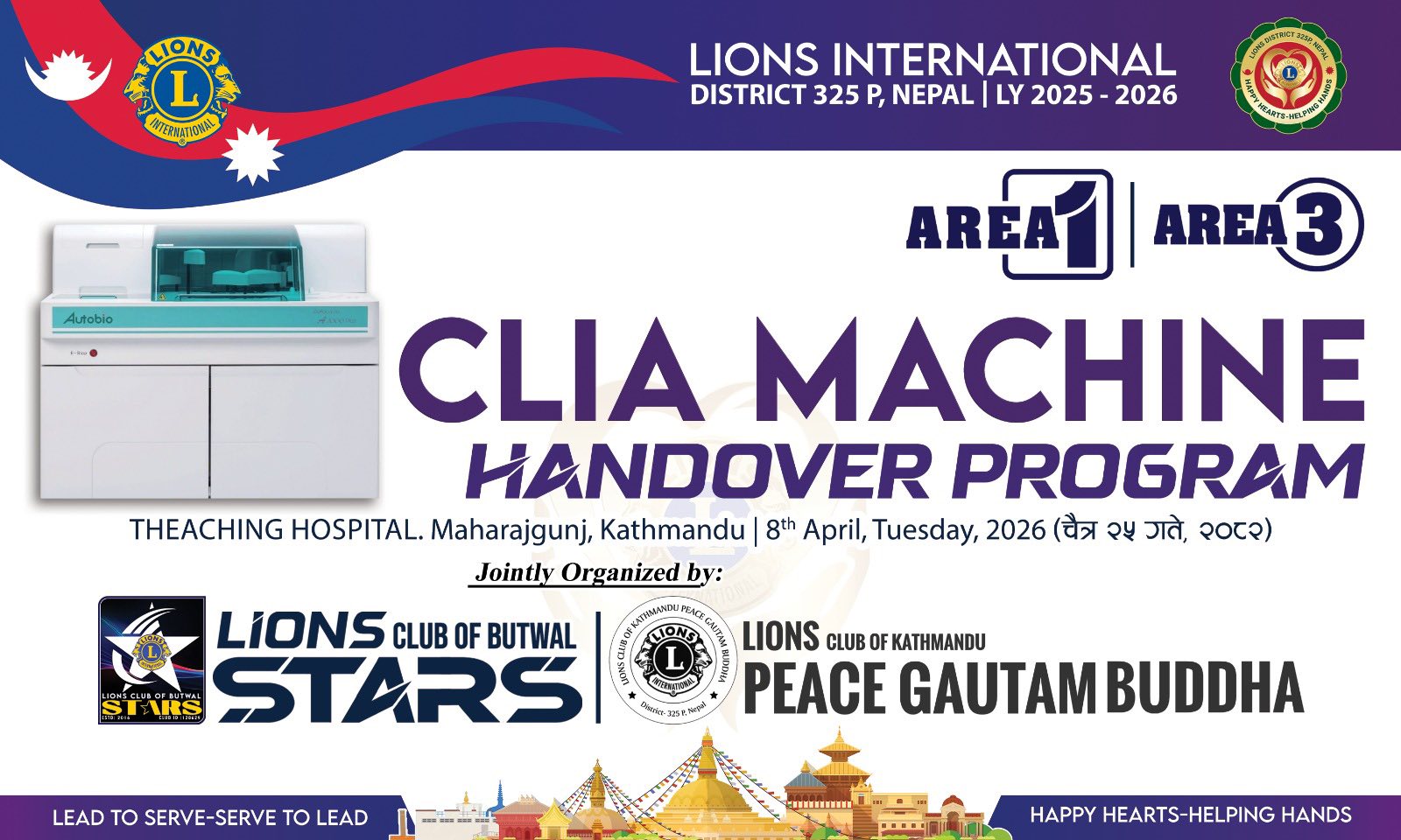 लायन्स क्लब अफ बुटवल स्टार्स र लायन्स क्लब अफ काठमाडौ पिस गौतमबुद्ध को सयुक्त आयोजनामा बुधबार एक कार्यक्रको आयोजना गरि सिलिए मेसिन लायन्स इन्टरनेशनल डिष्ट्कि ३२५ पि का गर्भनर बालाराम भट्टराईले सामाजिक क्षेत्रमा क्लवले महत्पूर्ण कार्यक्रम गर्दै आएको बताउनुभएको थियो। उहाँले सबैको सहकार्यले गर्दा नै समाज परिर्वतनमा लायन्स सामाजिक क्लबहरुले मुख्य भूमिका खेलेको बताउनुभएको थियो ।कार्यक्रममा लायन्स डिष्ट्रिक ३२५ पि का फस्ट भिडिजी संन्दिप कसौधन ,द्धितिय गर्भनर मिना पन्थीले स्वास्थ्य सेवामा थप टेवा पुर्याउने र जसले बिरामीहरूको परीक्षण प्रक्रियालाई अझ प्रभावकारी र सहज बनाउने विश्वास लिइएको बताउनुभयो।
