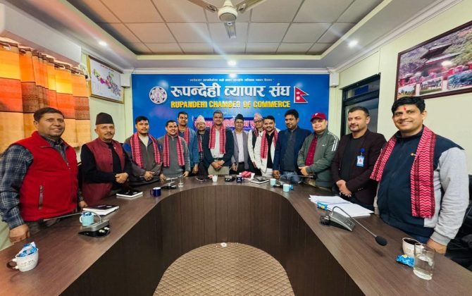 बुटवल ४ फाल्गुण । आफ्नो वार्षिक कार्यतालिका अन्तरगत रुपन्देही व्यापार संघले संघमा आबद्ध विभिन्न प्रकृतिका व्यवसाय सञ्चालन गर्ने व्यवसायी सदस्यहरुलाई गोलबन्द गर्ने लक्ष्य अनुसार वस्तुगत भेलालाई तिब्रता दिएको छ। यसैक्रममा सोमबार संघमा आवद्ध होजियारी...