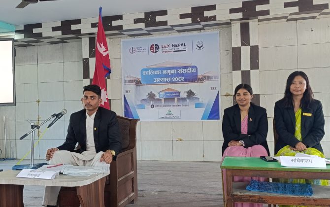 बुटवल,३ फागुन। कालिका मानवज्ञान माबि बुटवलमा नवौँ नमूना संसदको अधिवेशन सम्पन्न भएको छ । विद्यार्थीहरुलाई नेपालको संसदीय पद्धतिको जानकारी दिनको लागि विद्यालयले २०७३ सालदेखि नियमित रुपमा नमूना संसदको अधिवेशन गराउँदै आएको छ । लेक्स नेपाल, लिगल...