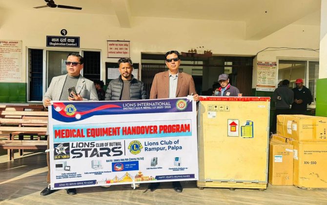 बुटवल, मंसिर–लायन्स क्लब अफ बुटवल स्टार्स र लायन्स क्लब अफ रामपुर पाल्पा द्वारा संयुक्त आयोजनामा रामपुर अस्पतालमा ६० लाख रुपैयाँका बिभिन्न उपकरण प्रदान गरेको छ । शनिबार रामपुरअस्पातलमा एक बिशेष कारक्रमको आयोजनागरि उत्तm उपकरण...
