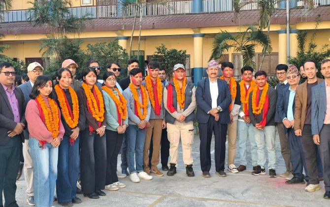 बुटवल,१२ मंसिर । नेपाल प्रथमसहित मणिमुकुन्द कलेज बुटवलले २०८२ सालमा एमबीबीएससहितका विषय अध्ययनका लागि लिइएको परीक्षामा पूर्ण छात्रवृत्तिमा नाम निकाल्न सफल १३ जना विद्यार्थीहरूलाई सम्मान गरी बुटवल र रुपन्देही जिल्लाव्यापी ¥याली गरेको छ । पूर्ण...