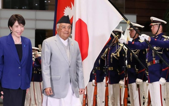 काठमाडौँ,२० माघ। राष्ट्रपति रामचन्द्र पौडेललाई आज जापान सरकारका तर्फबाट ‘गार्ड अफ अनर’ प्रदान गरिएको छ । जापानको चारदिने भ्रमणमा रहेका राष्ट्रपति पौडेललाई जापान सरकारले ‘गार्ड अफ अनर’ प्रदान गरेको हो । जापान सरकारको निमन्त्रणामा राष्ट्रपति...
