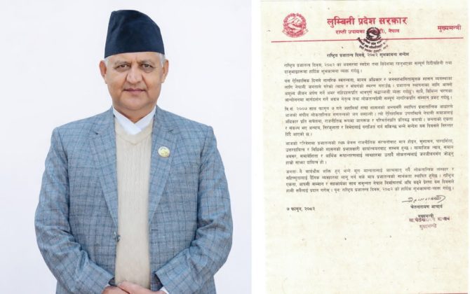 दाङ,७ फागुन । लुम्बिनी प्रदेशका मुख्यमन्त्री चेतनारायण आचार्यले प्रजातन्त्रको रक्षा राजनीतिक संरचना संगै पारदर्शिता, उत्तरदायित्व र विधिको शासनको प्रभावकारी कार्यान्वयनबाट सम्भव हुने बताउनुभएको छ । राष्ट्रिय प्रजातन्त्र दिवस, २०८२ का अवसरमा शुभकामना सन्देश...