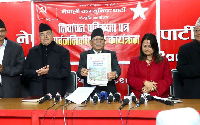 काठमाडौँ,२७ माघ। विभिन्न २२ वटा कम्युनिष्ट तथा समाजवादी घटकहरूको एकीकरणपछि बनेको नेपाली कम्युनिष्ट पार्टी(नेकपा)ले आगामी २०८२ फागुन २१ मा हुने प्रतिनिधि सभा सदस्य निर्वाचनका लागि आफ्नो विस्तृत प्रतिबद्धता पत्र सार्वजनिक गरेको छ ।प्रतिबद्धता पत्रमा...