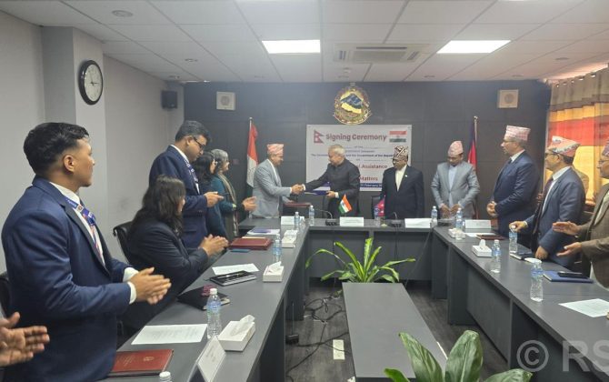 काठमाडौँ,५ फागुन । । नेपाल र भारतबिच फौजदारी विषयमा पारस्परिक कानुनी सहायतासम्बन्धी सम्झौता पत्रमा हस्ताक्षर भएको छ ।सम्झौतामा नेपाल सरकारका तर्फबाट कानुन, न्याय तथा संसदीय मामिला मन्त्रालयका सहसचिव विनोदकुमार भट्टराईले र भारत सरकारका तर्फबाट...