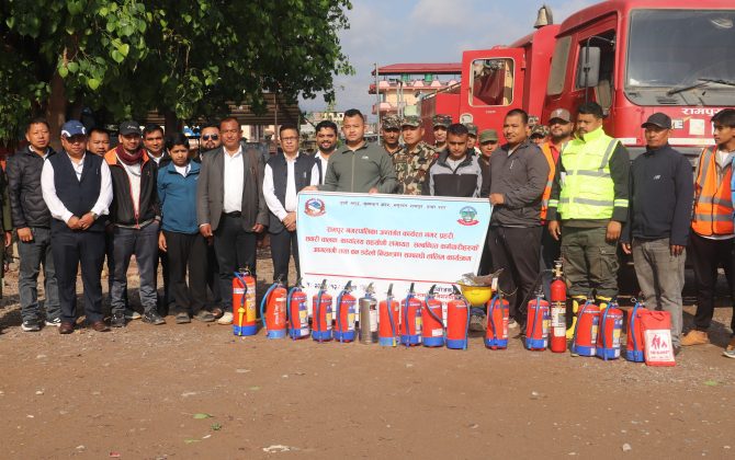 पाल्पा,,२६ चैत । रामपुर नगरपालिकाले सुरक्षाकर्मी तथा कर्मचारीहरुका लागि आगलागी नियन्त्रण सम्बन्धी तालिम प्रदान गरेको छ ।आगलागीको समयमा खटिने कर्मचारी, नगर प्रहरी, नेपाली सेना र नेपाल प्रहरीलाई आगलागी तथा वन डढेलो नियन्त्रण कसरी गर्न...