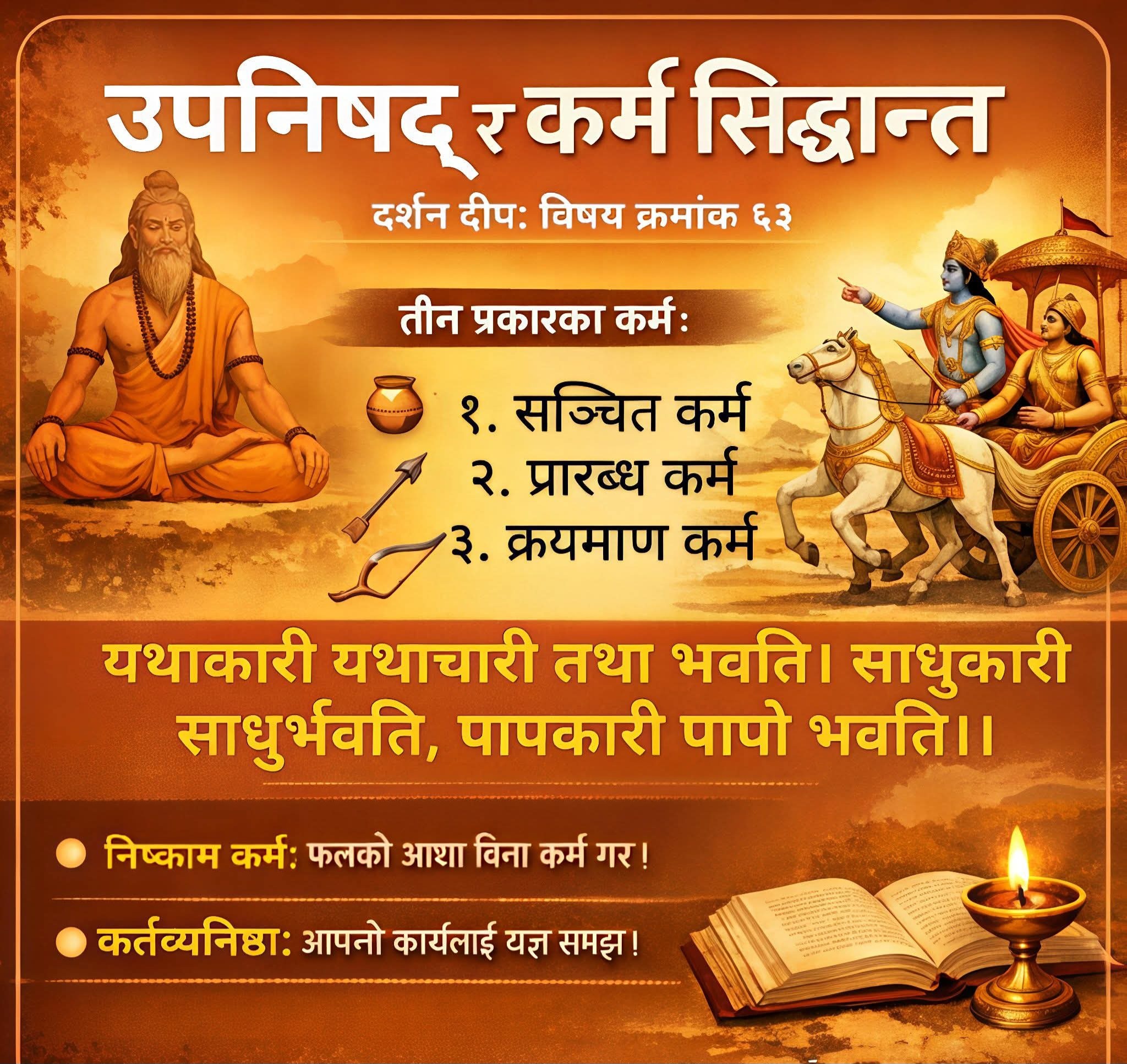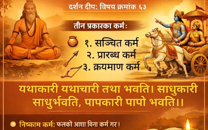 • (दर्शन दीप: विषय क्रमांक ६३) आज यो यात्रामा निस्किएको पनि दुई महिना बढी भएको छ, तर सत्यको खोजी भने अझै अधुरै जस्तो लाग्छ। वैदिक वाङ्मयको विशाल सागरमा डुबुल्की...
